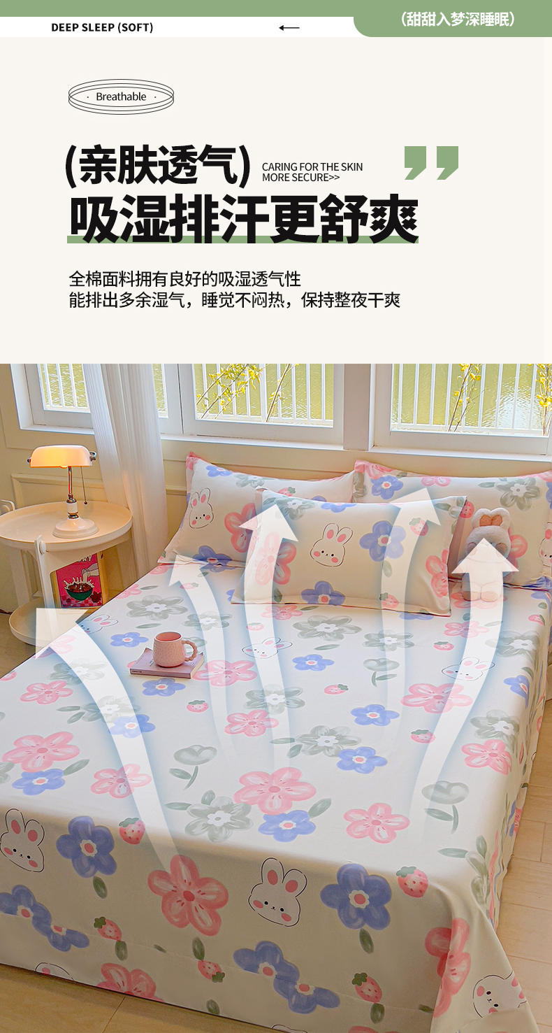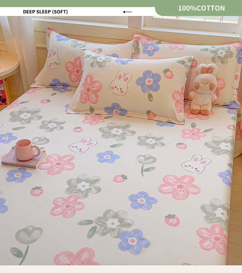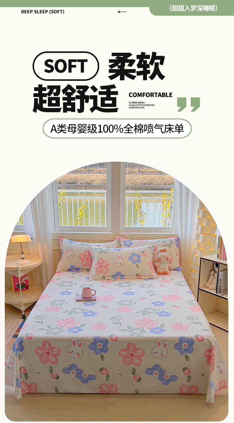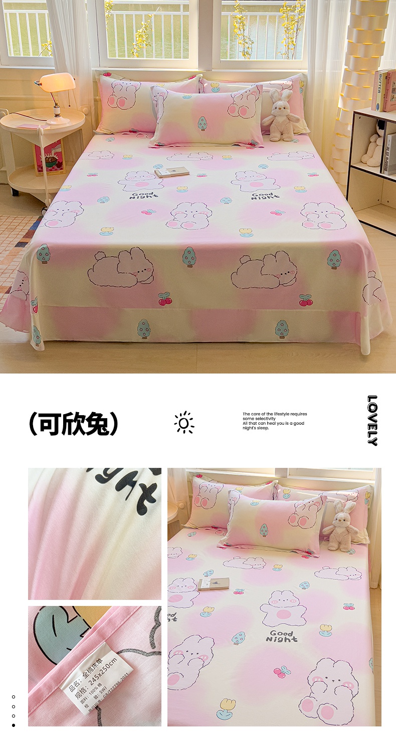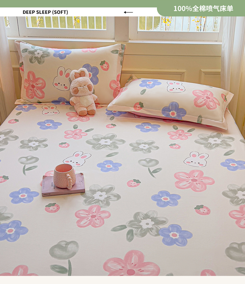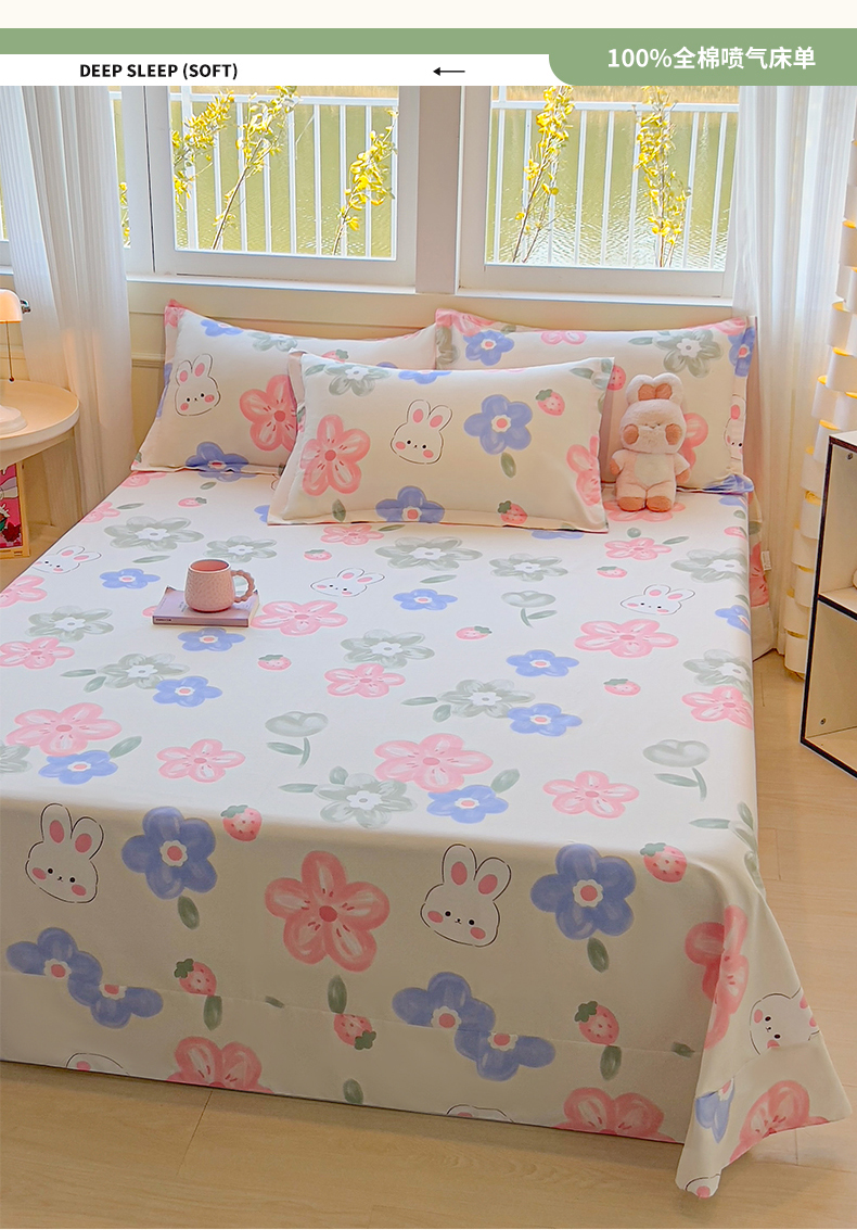 拾物记 2025新款A类无荧光全喷气全棉12868单床单 花间小兔