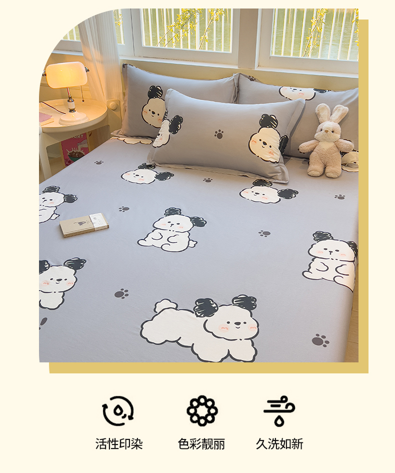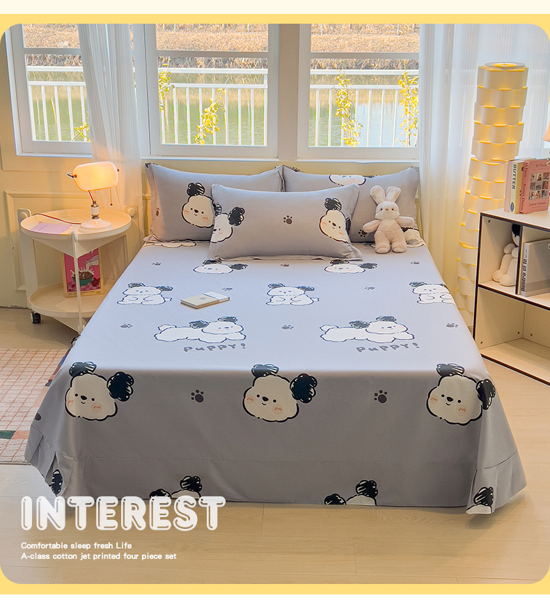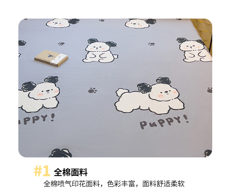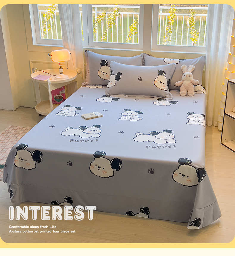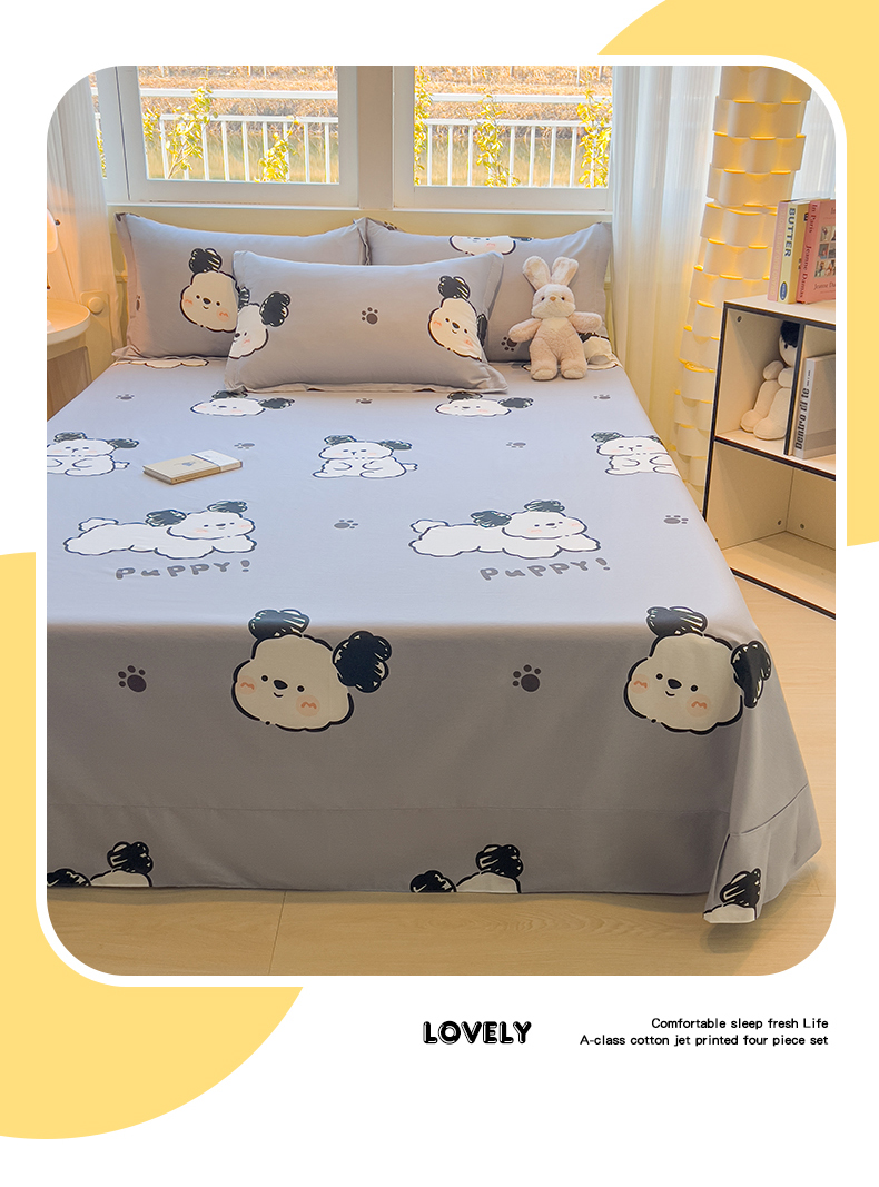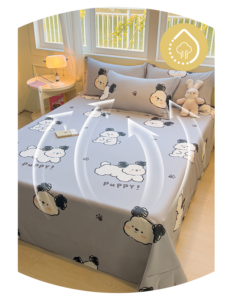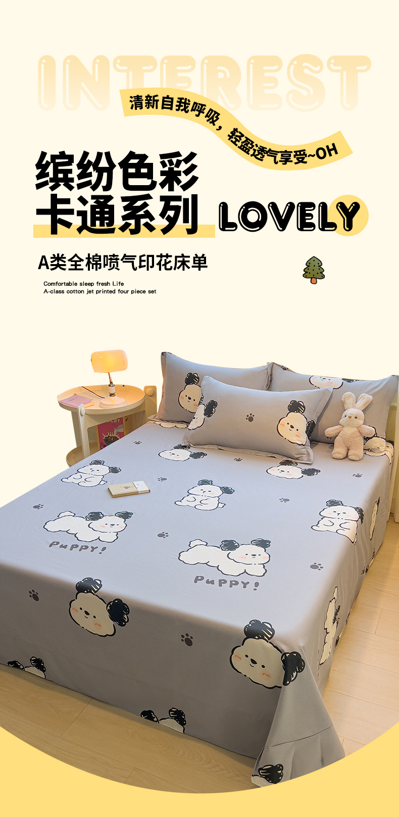 拾物记 2025新款A类无荧光全喷气全棉12868单床单 小狗奔奔