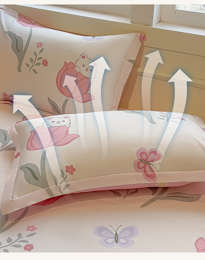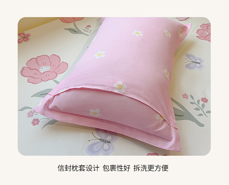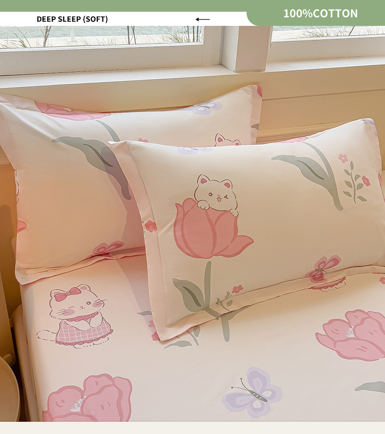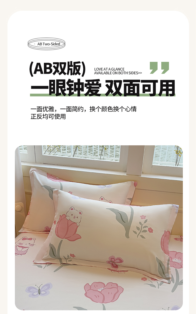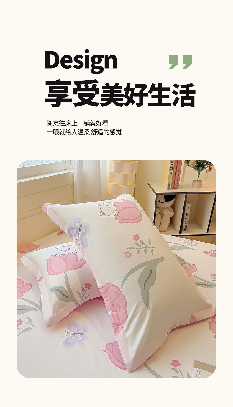 拾物记 2025新款A类无荧光全喷气全棉12868单枕套 花欣猫趣-粉