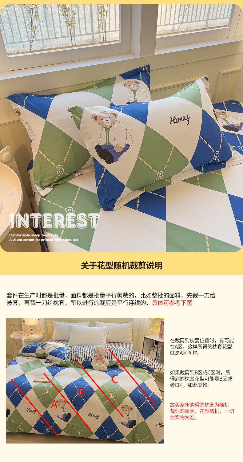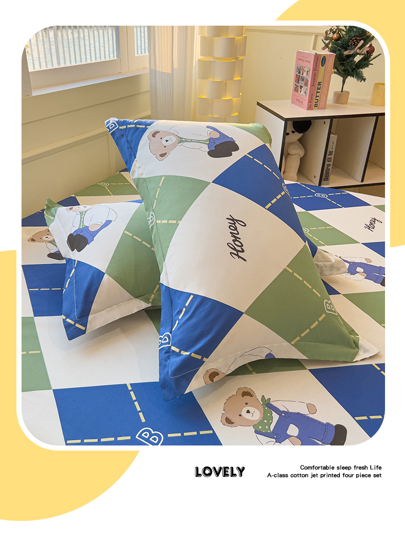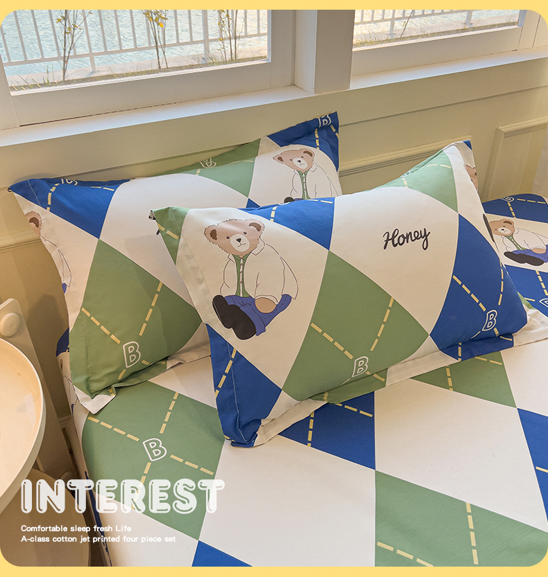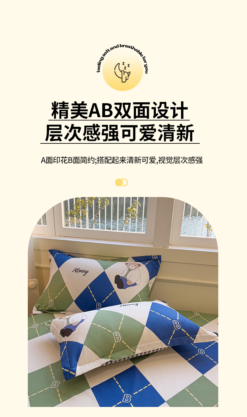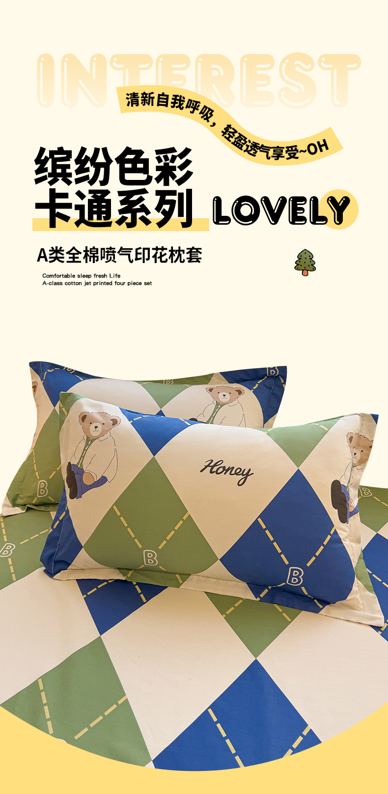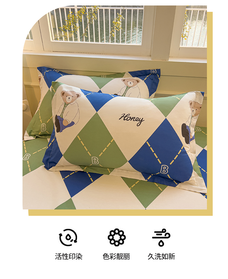 商品名称:拾物记 2025新款A类无荧光全喷气全棉12868单枕套 英伦熊