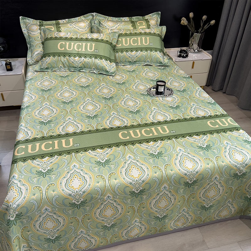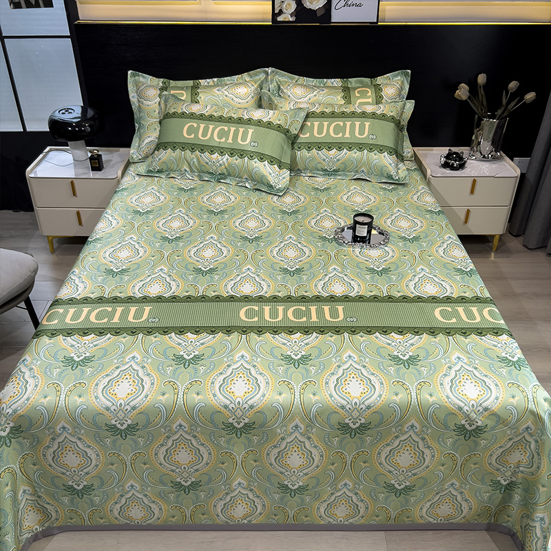 商品名称:柏薇 2025新款冰丝床单款凉席三件套系列 春夏绿