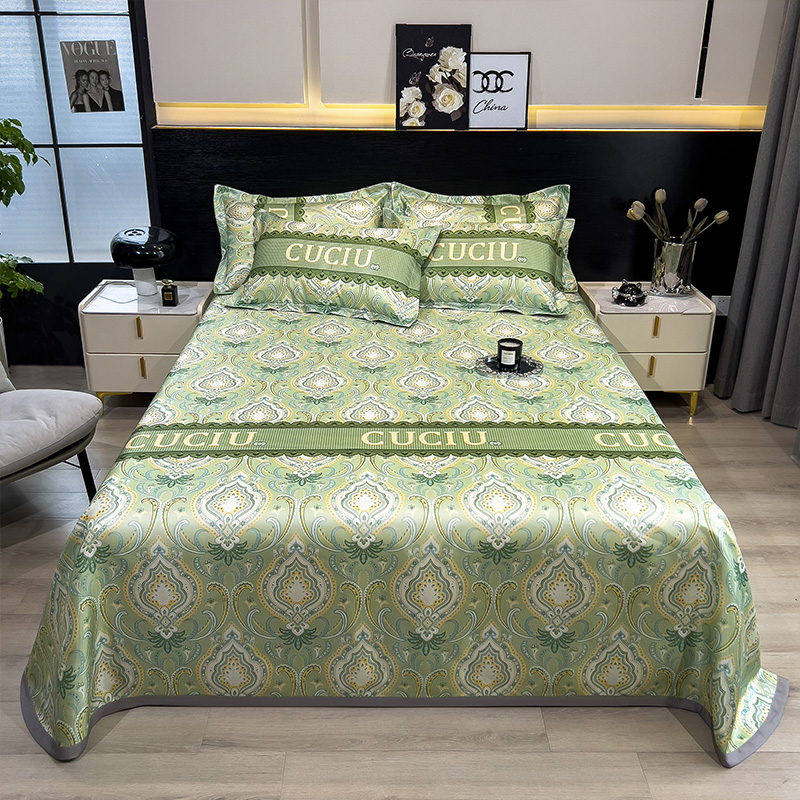柏薇 2025新款冰丝床单款凉席三件套系列 春夏绿