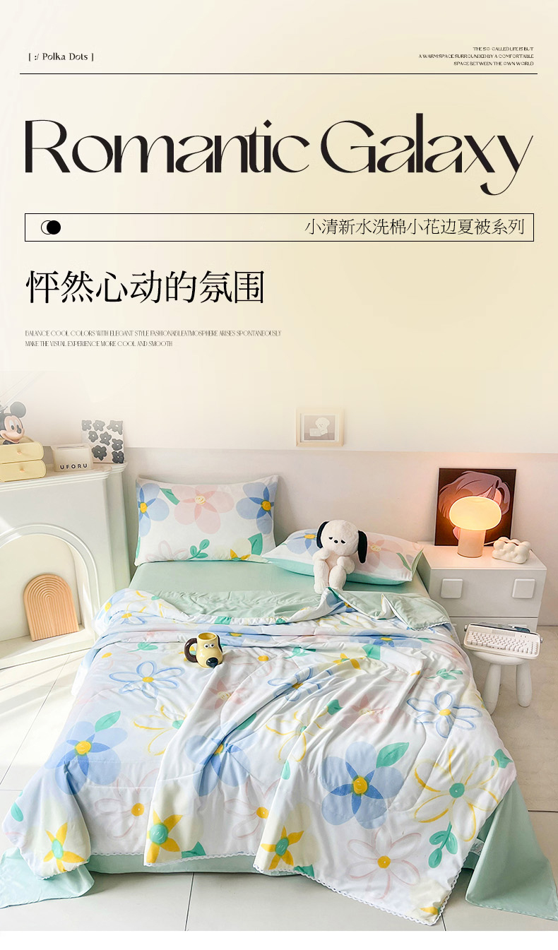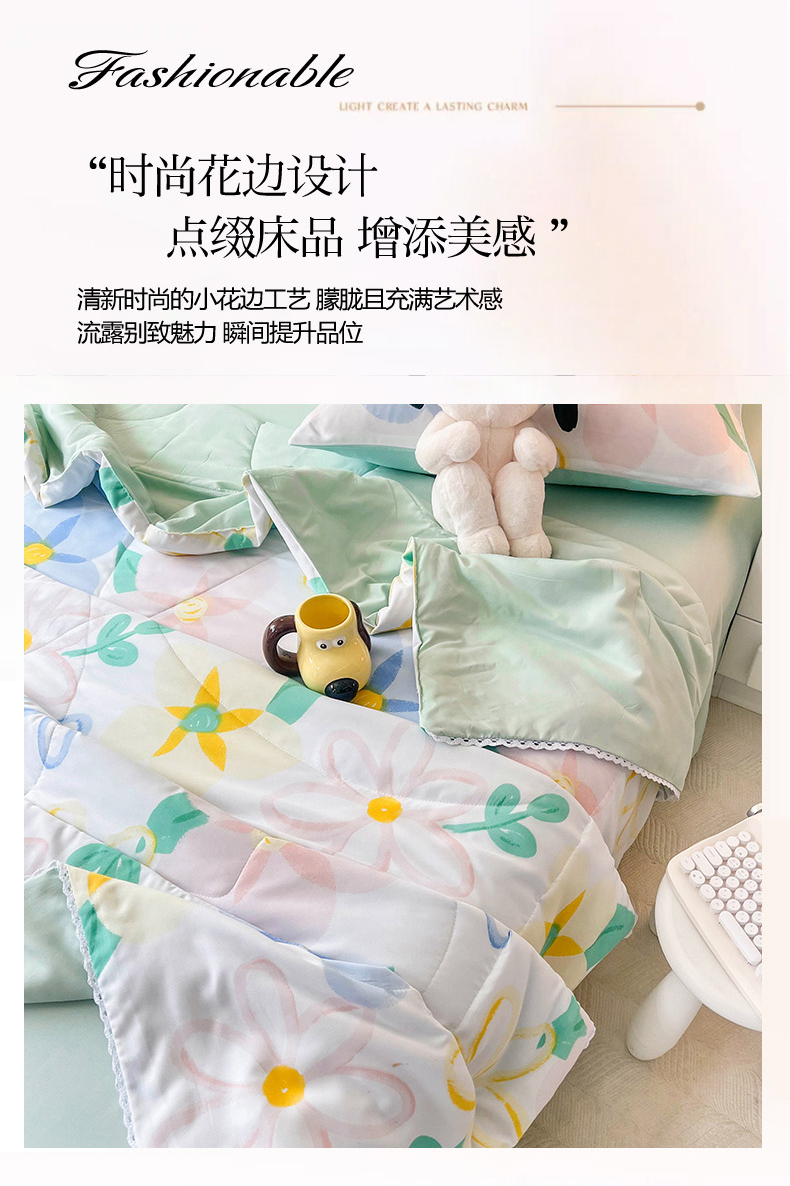 商品名称:倾慕家纺 2025新款水洗棉小花边夏被 七彩花色