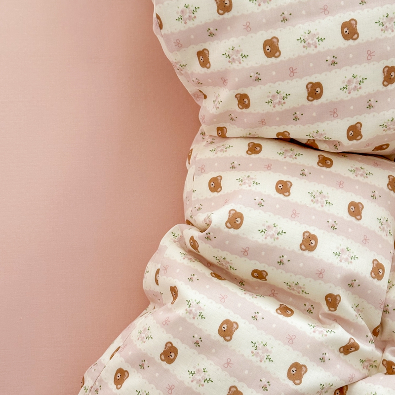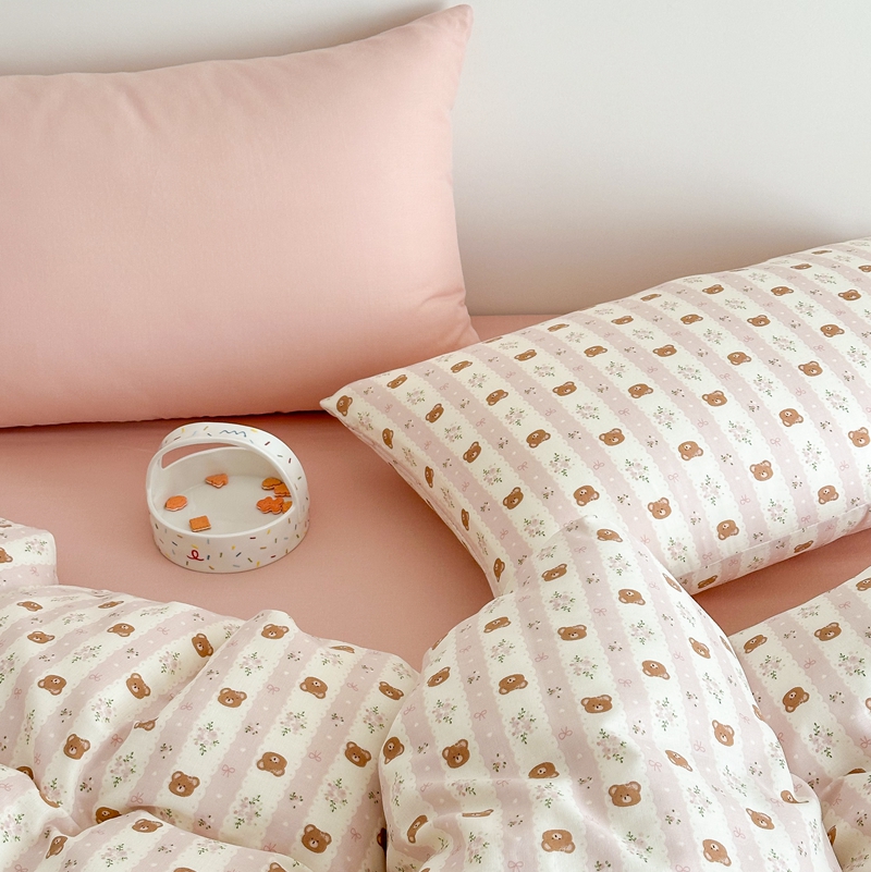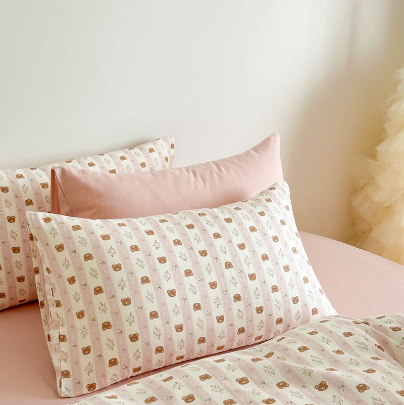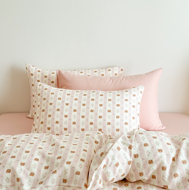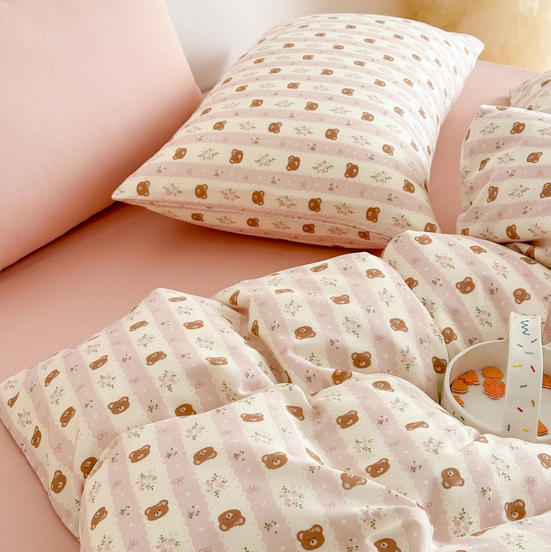 商品名称:桃喜 2025新款春夏双层纱卡通系列四件套 条纹小熊粉