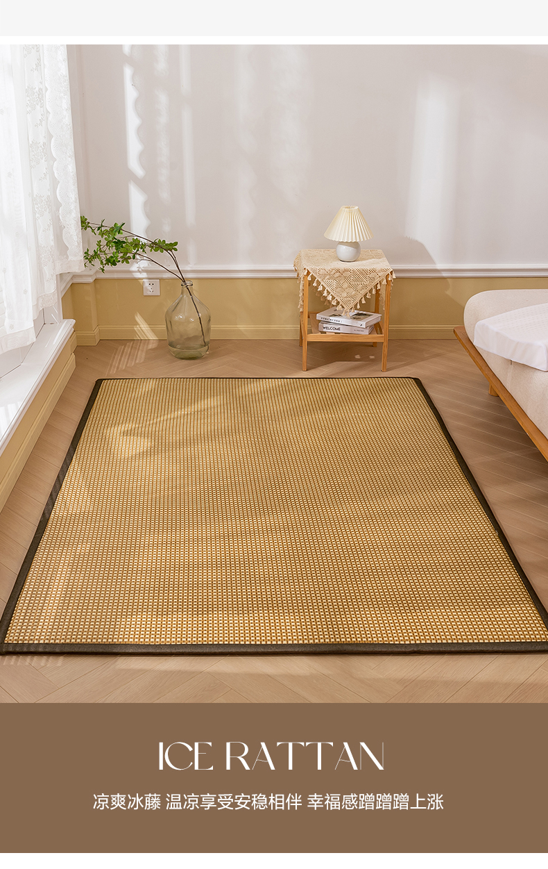 当前位置: 91家纺网 > 商品网购 > 居家布艺 > 地垫 > 阿亮家居 2025新款包边工艺凉感冰藤地铺睡垫系列凉席地垫 白玉藤