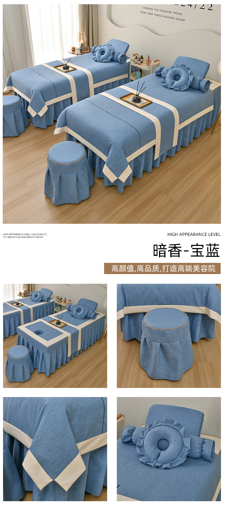 (总)芙怡 2025春夏新款8031款棉麻美容床罩四件套-未央系列,未央-蝶翅蓝,未央-格调 灰,未央-蜜桃 粉,未央-浅咖,未央-浅驼,未央-斑斓绿