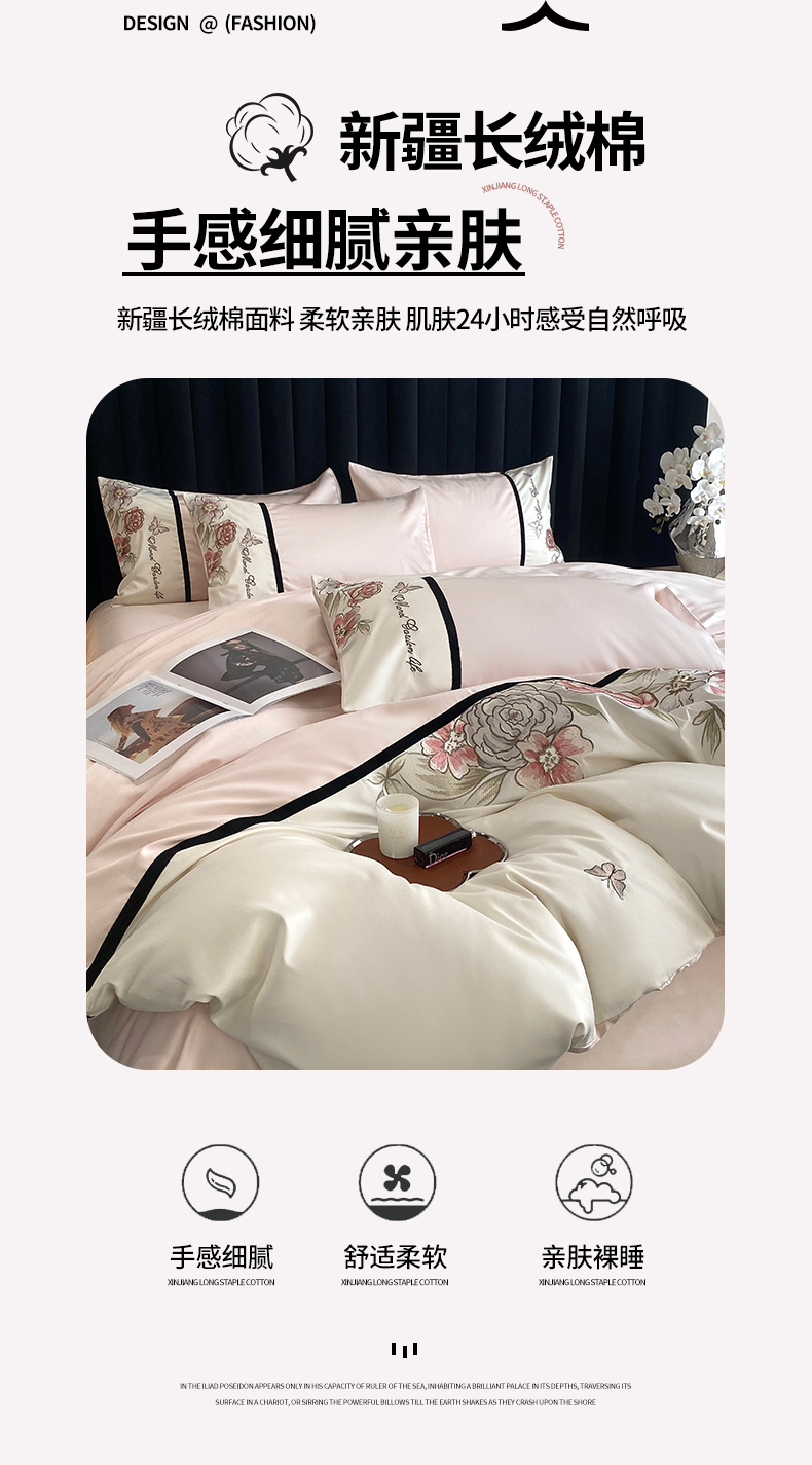 优悦生活馆 2025新疆长绒棉花团锦簇四件套【价领券后标准不低于268】 花团锦簇-蜜糖粉