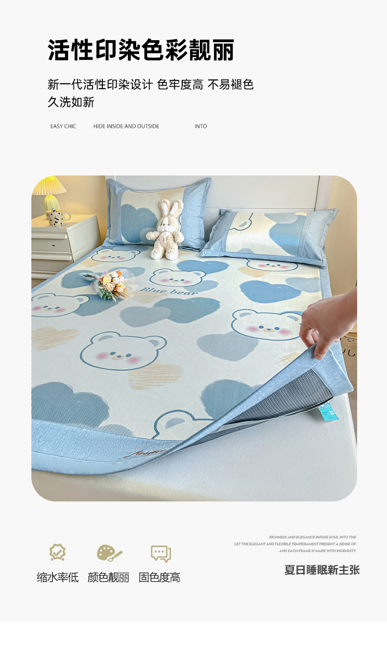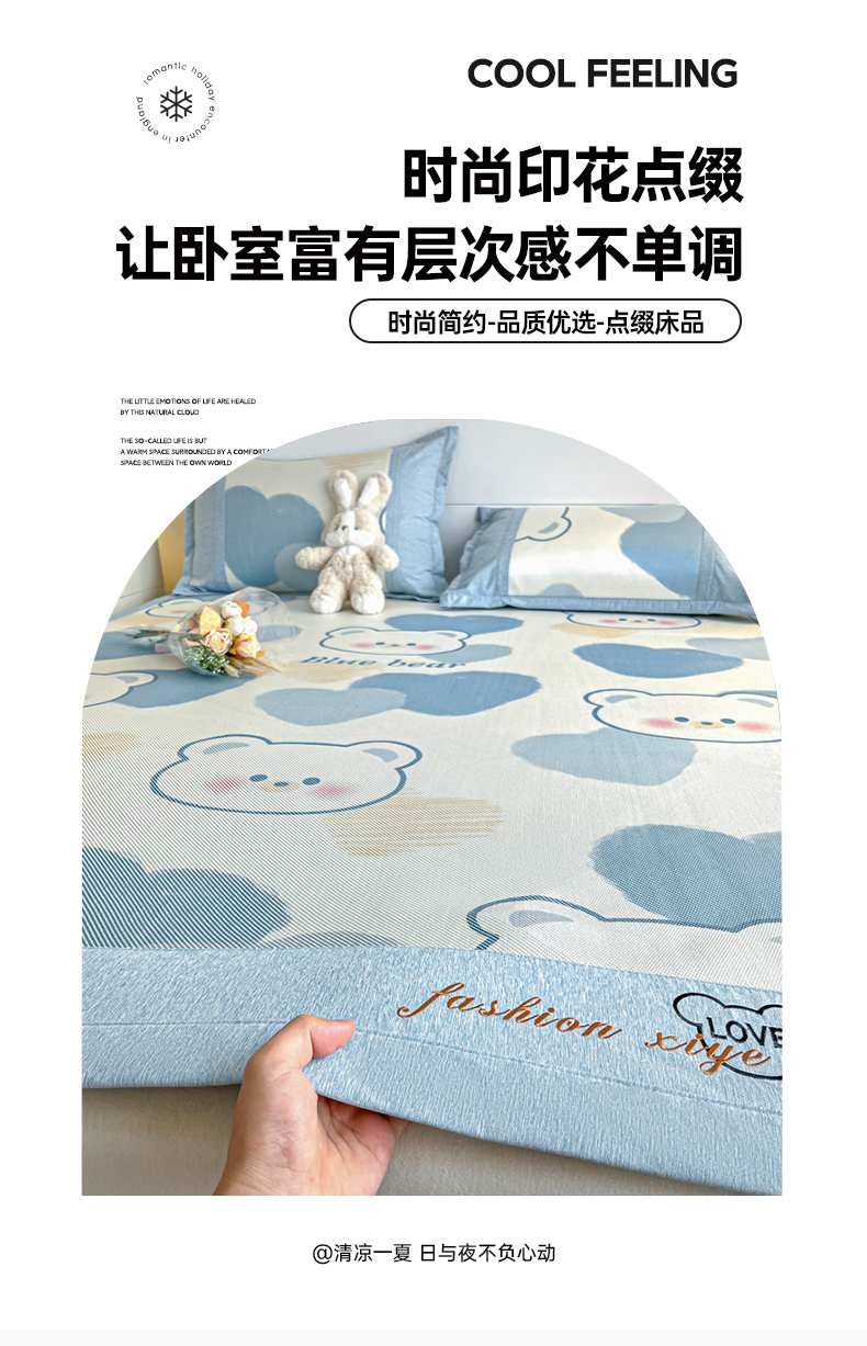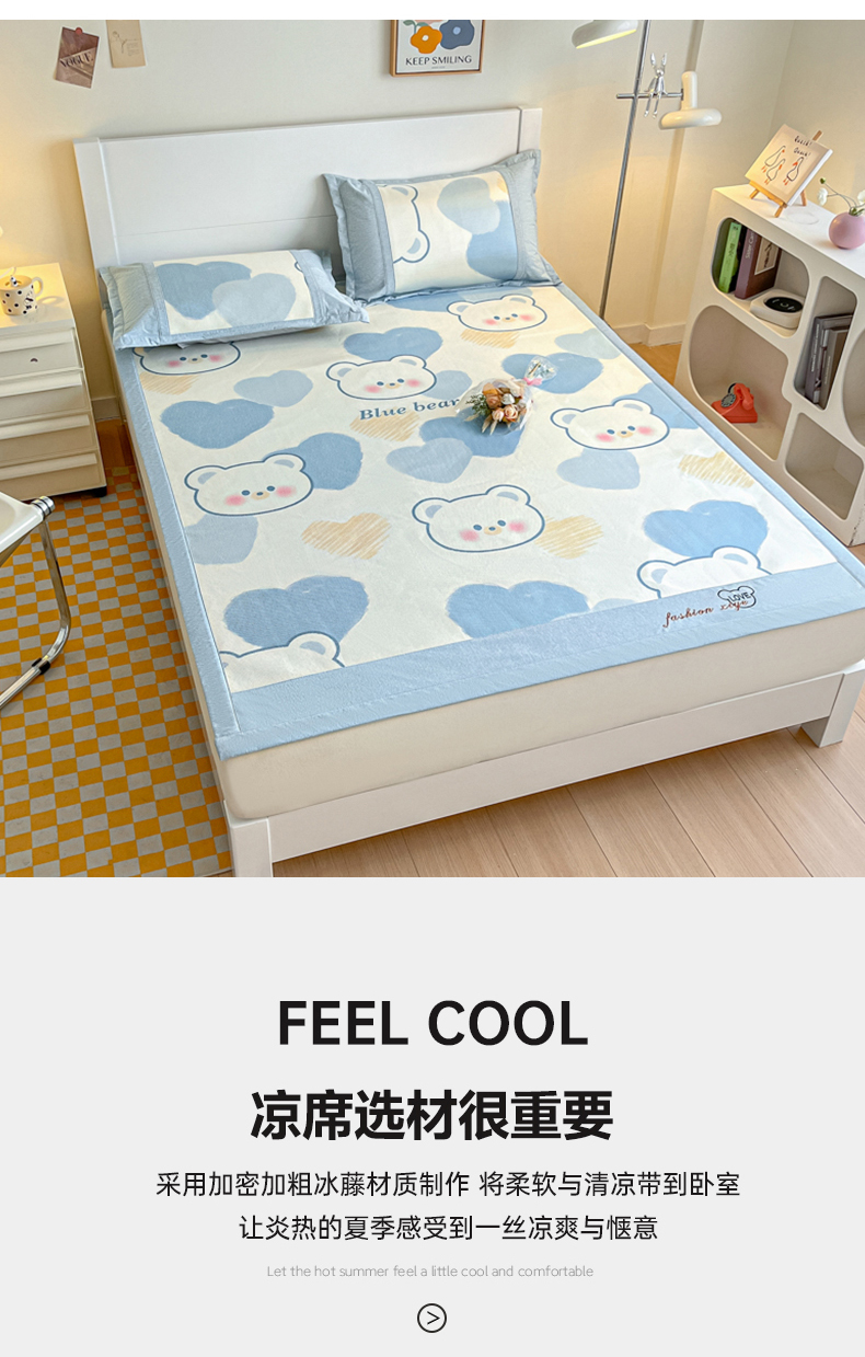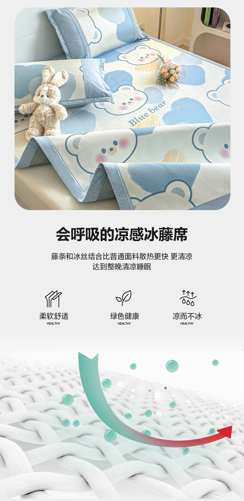 (总)2025新款印花冰藤凉席-学生款,杯具熊,冰块蓝,粉熊猫,可哒鸭,萝卜兔,太空人,小兰花,小企鹅