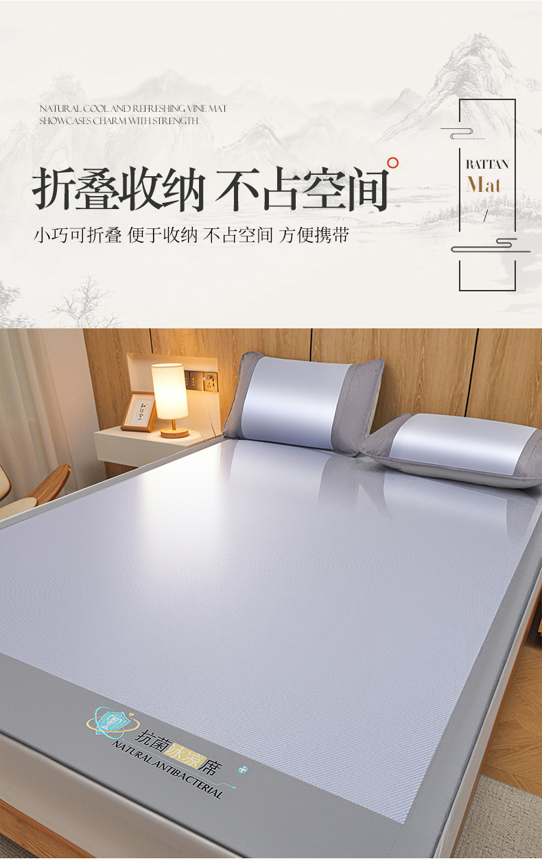 商品名称:阿亮家居 2025新款冰藤席凉席三件套包边抗菌刺绣款冰藤凉席 蓝紫色-床席款