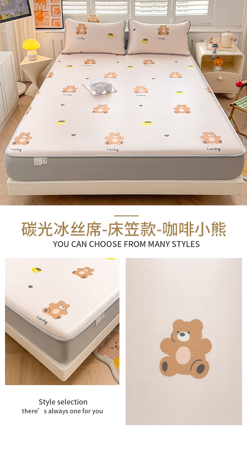 当前位置: 91家纺网 > 商品网购 > 床上用品 > 凉席 > 冰丝席 > 雯豆家纺 2025夏季新品碳光冰丝凉席床笠款三件套印花小清新绑带冰丝席床罩 碳光冰丝席-床笠款-小熊伙伴
