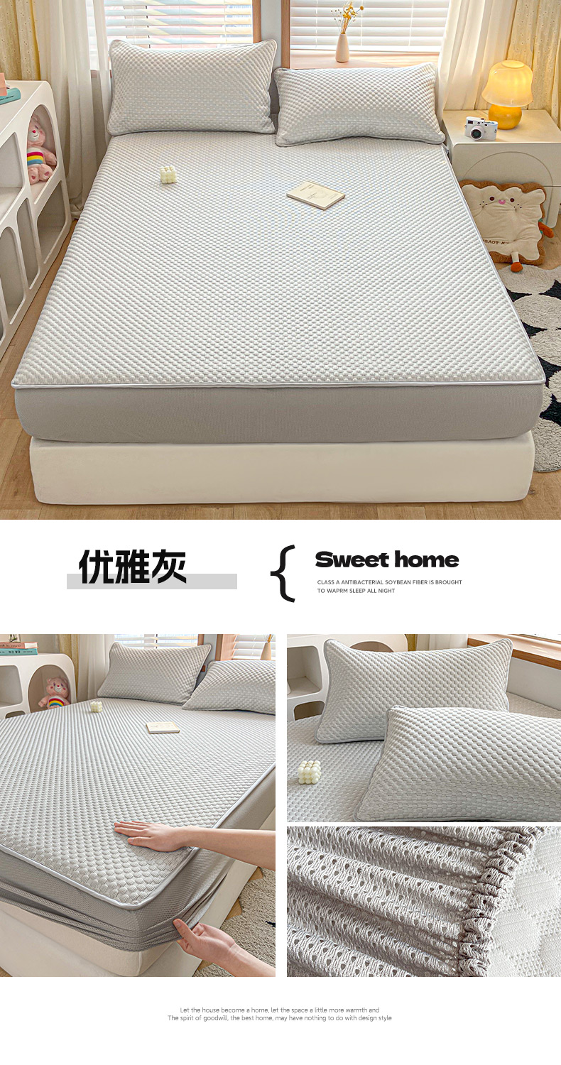 (总)卡伦 2025新款原棉抗菌大豆纤维防水夹棉床笠,白色,淡粉,果绿,卡其,水蓝,星灰