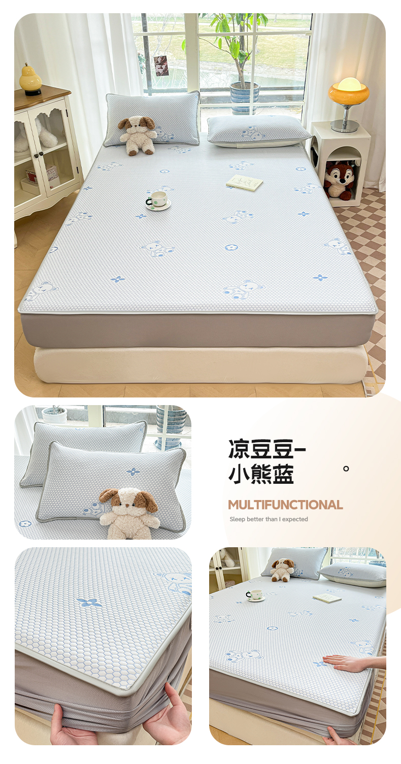 卡伦2025新款凉感丝凉豆豆凉席床笠提花系列 凉豆豆-小熊蓝