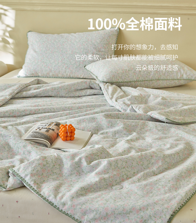 商品名称:暖阳 2025新款全棉贝壳边棉花夏被 花间寻梦蓝
