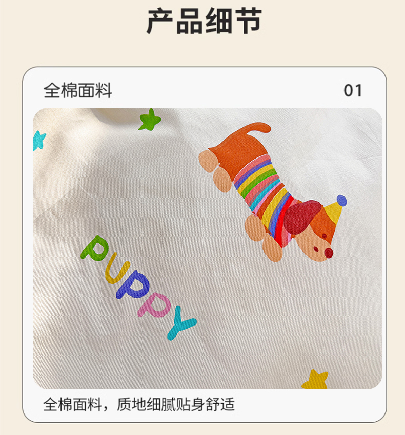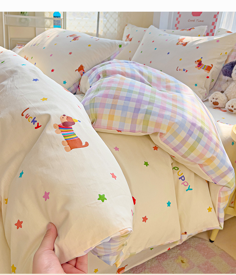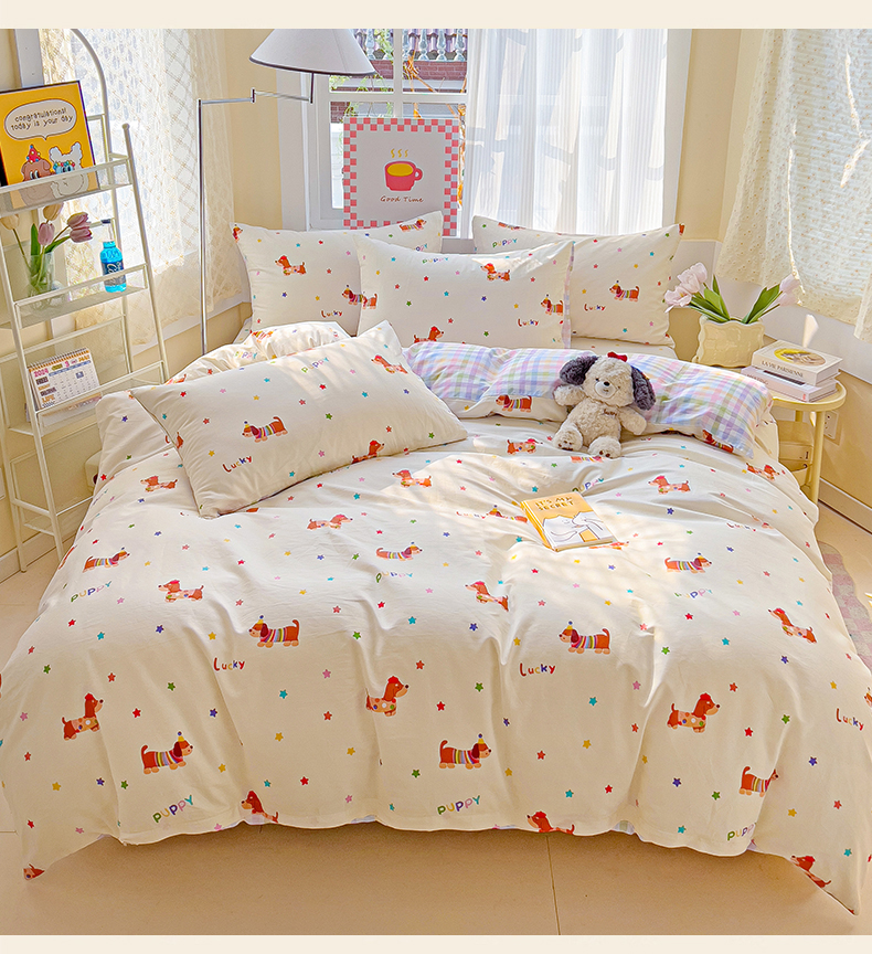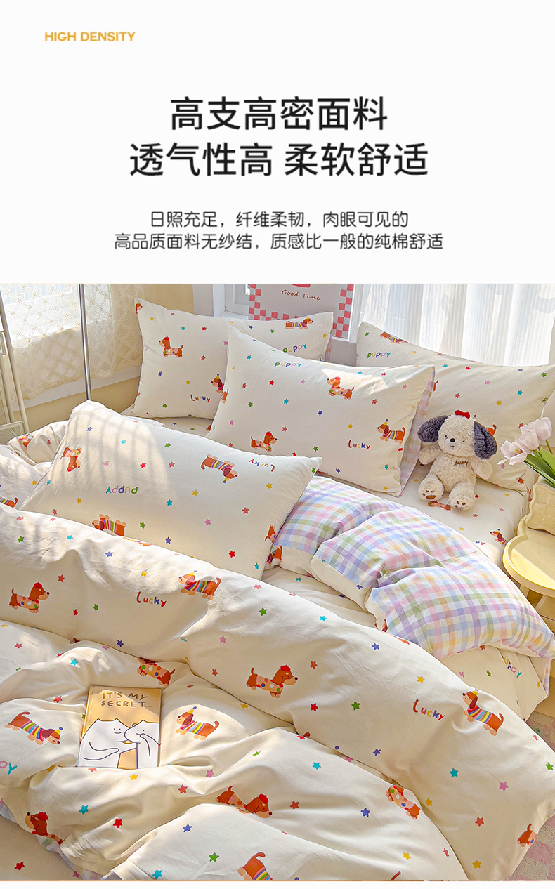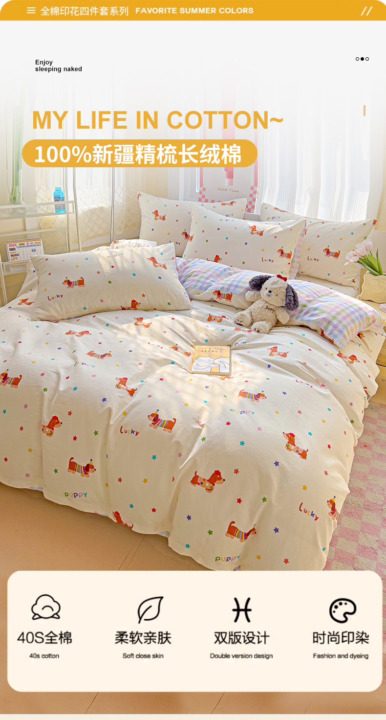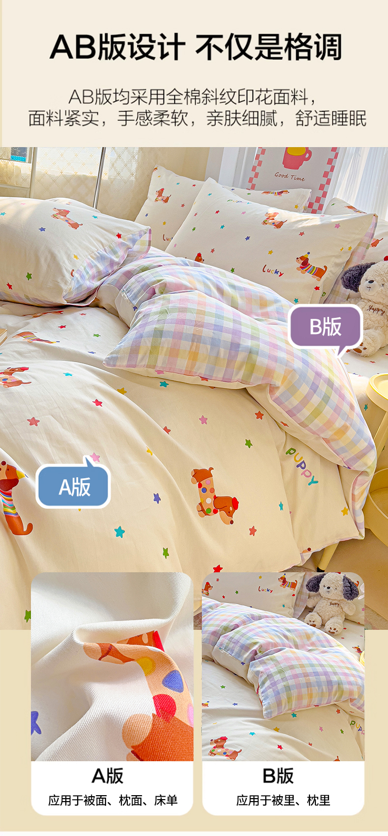 商品名称:棉生活家纺 2025新款ins全棉小清新系列四件套 狗狗联盟