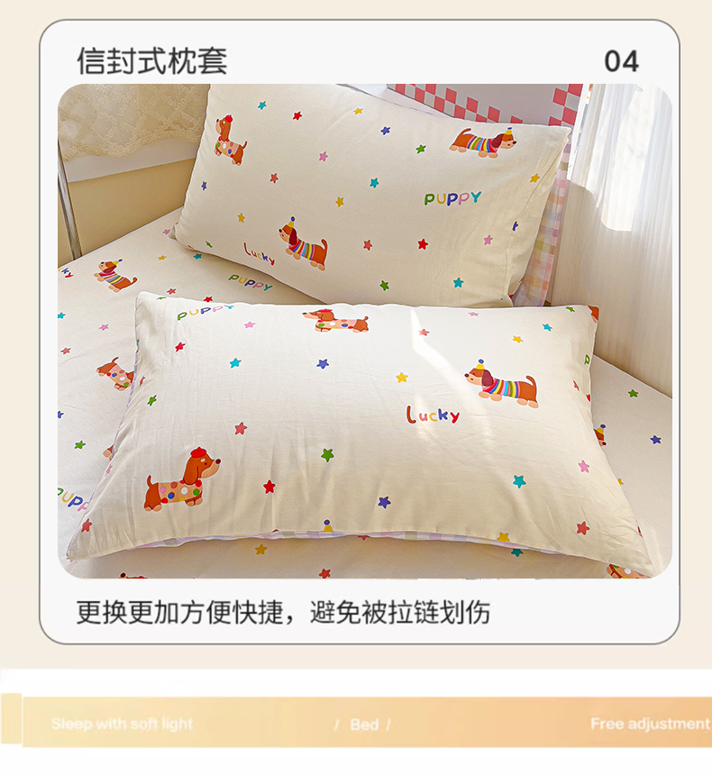 棉生活家纺 2025新款ins全棉小清新系列四件套 狗狗联盟