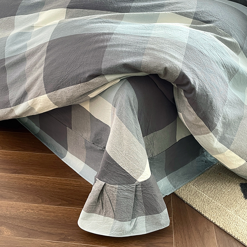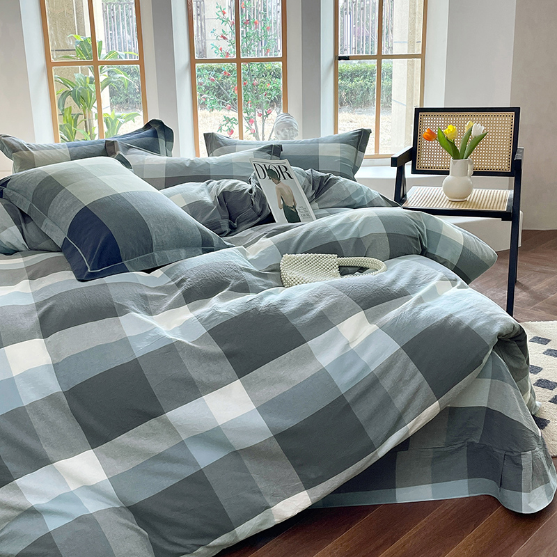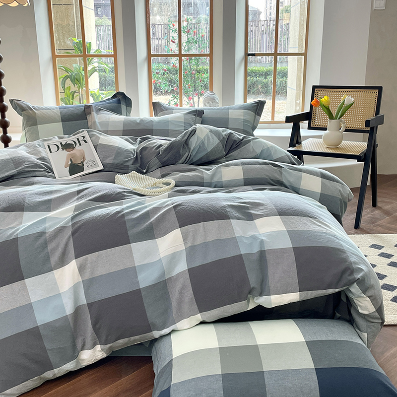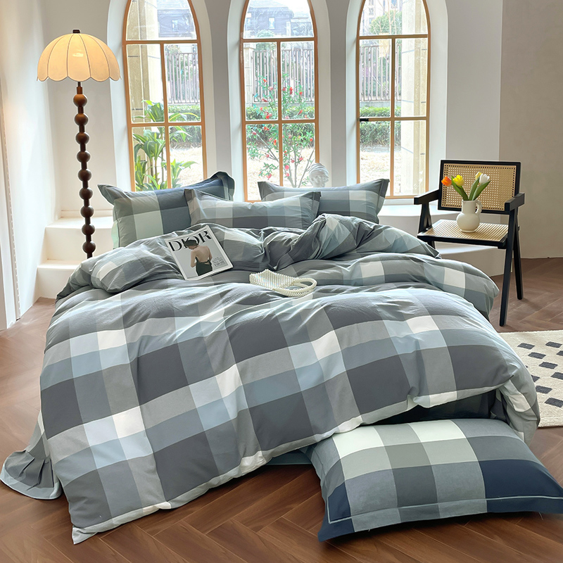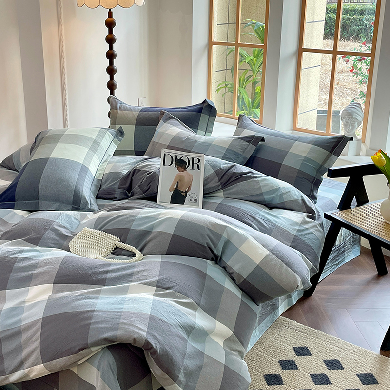 商品名称:喜四方 2025新款全棉色织水洗棉四件套 米夕大格-灰
