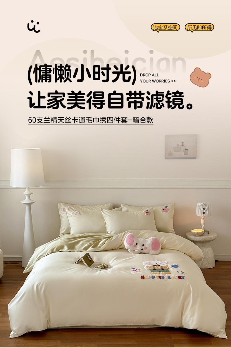 当前位置: 91家纺网 > 商品网购 > 床品套件 > 四件套 > 莱赛尔四件套 > FORTWO家纺原创设计(FOR TWO家纺) 2025新款60支兰精天丝卡通毛巾绣四件套-暗合款 小象哆啦