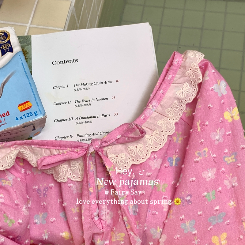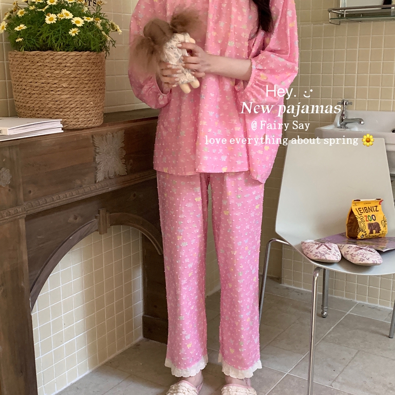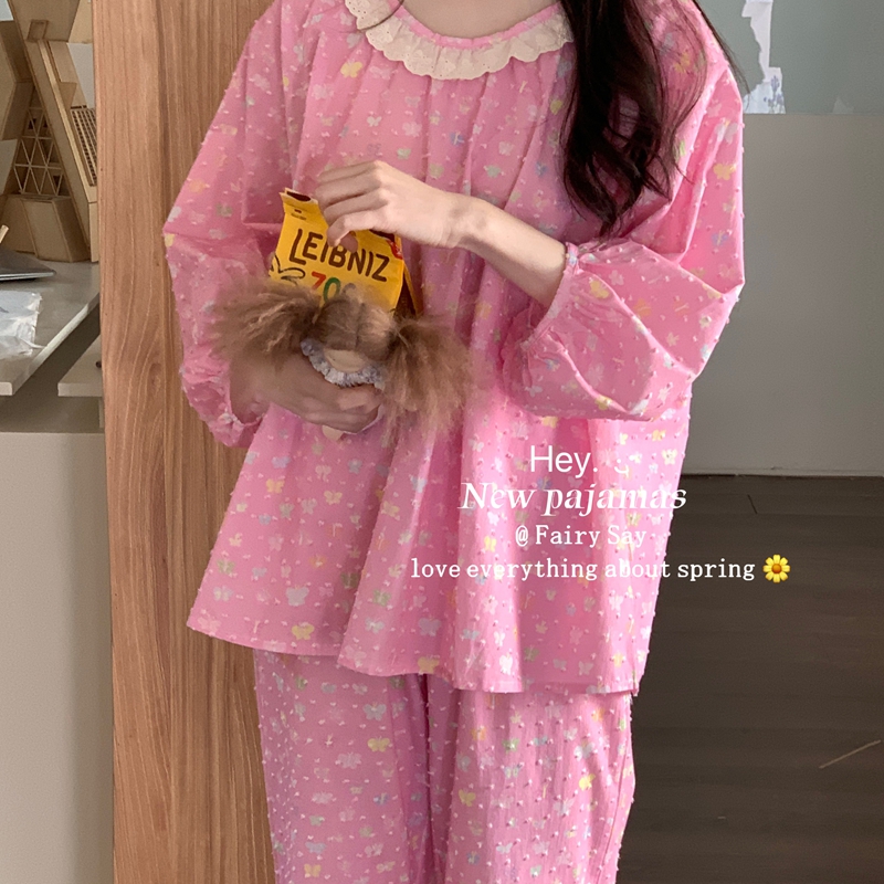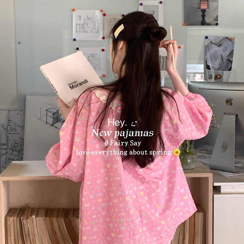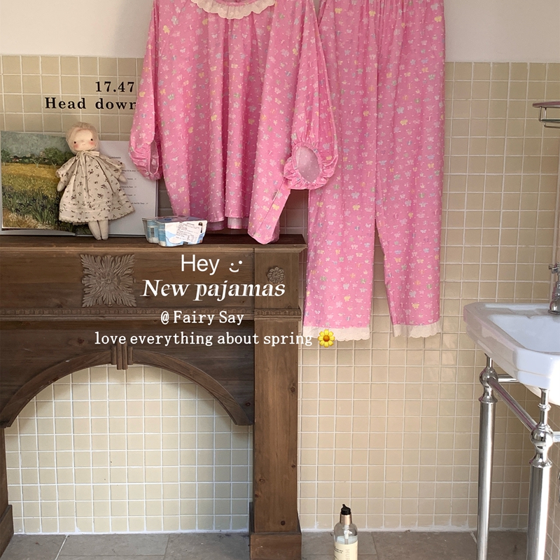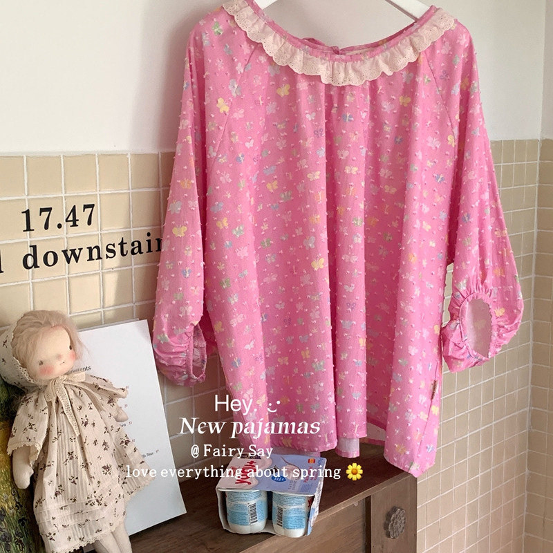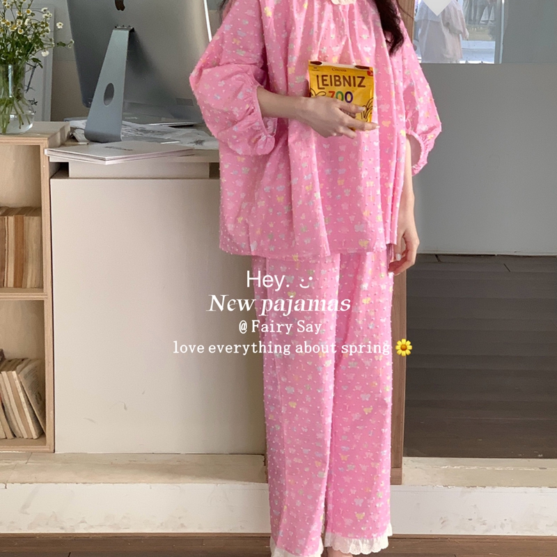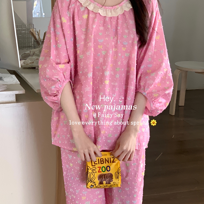 当前位置: 91家纺网 > 商品网购 > 居家日用 > 睡衣/家居服套装 > 2025新款全棉纯棉彩色蝴蝶剪花睡衣套装 粉色