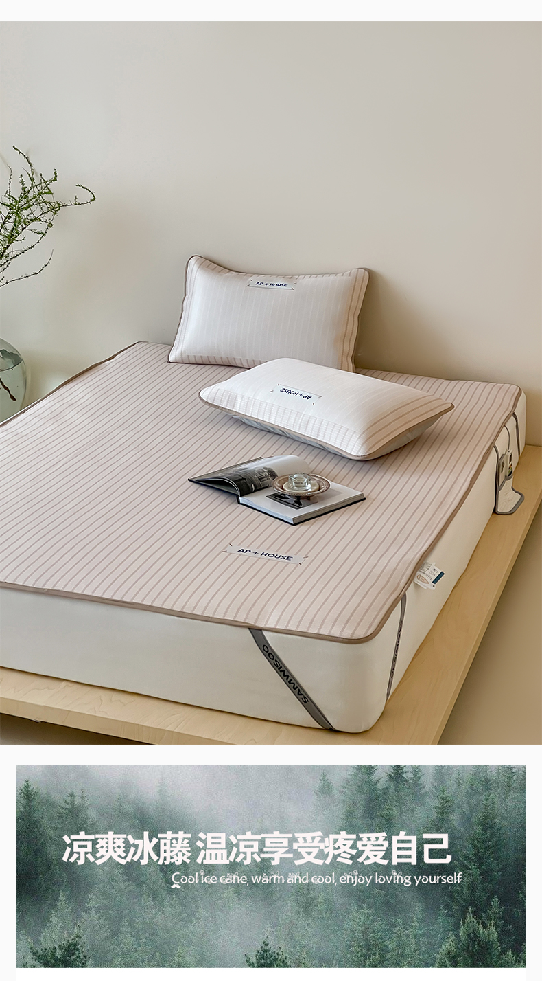 商品名称:三味舒屋 2025新款时尚简约小年轻专属900D高端养生印花冰藤凉席 摩普米-床席款