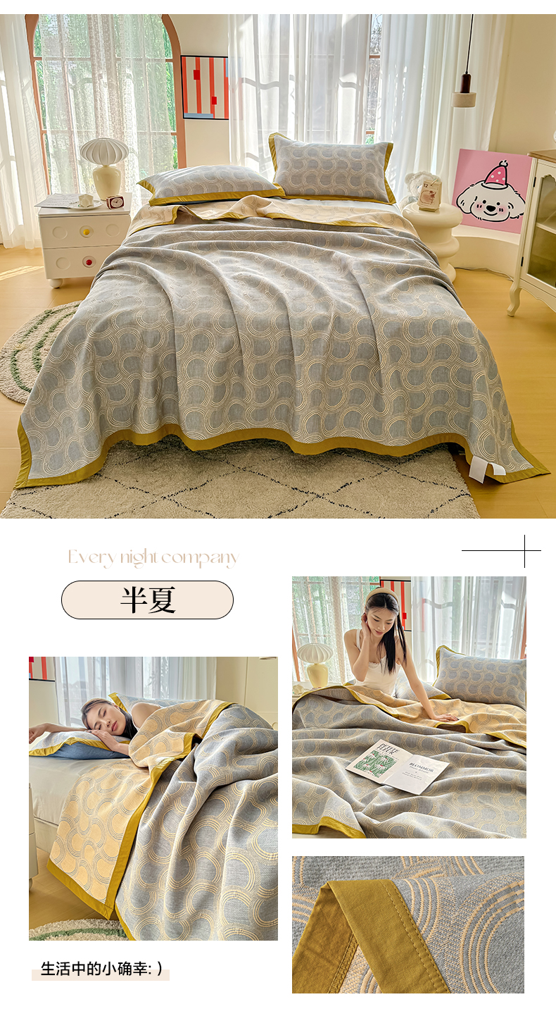 • 91家纺网 家纺一手货源 找家纺 棠薇家纺2025新款简约风多功能纱布盖毯纱布毯子毛巾被床盖沙发巾单毯枕巾枕套三件套 半夏