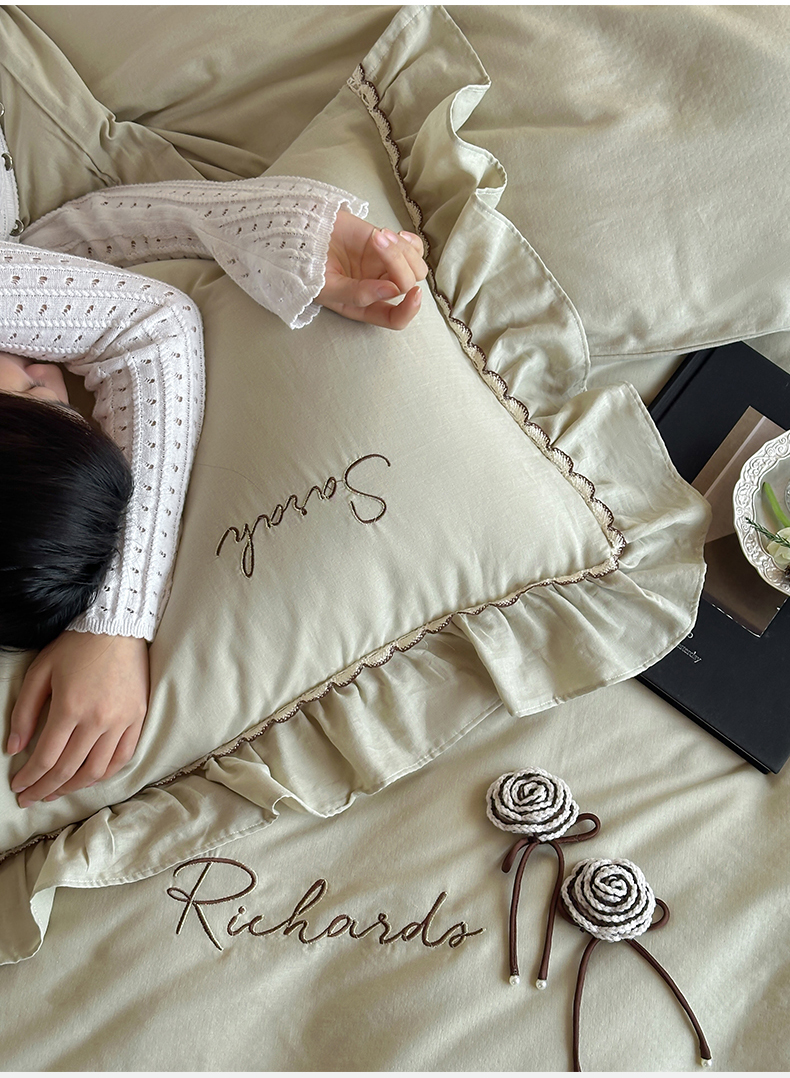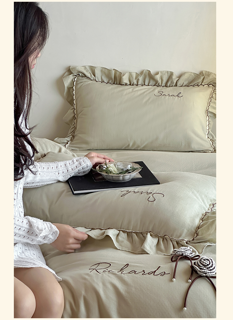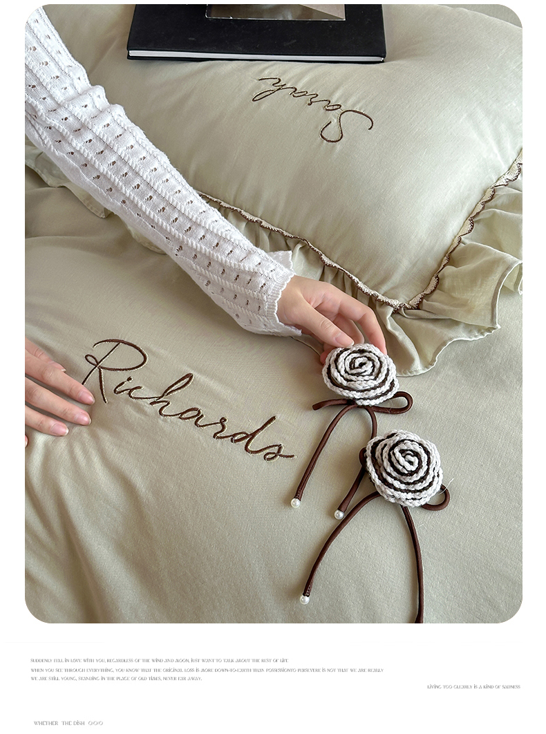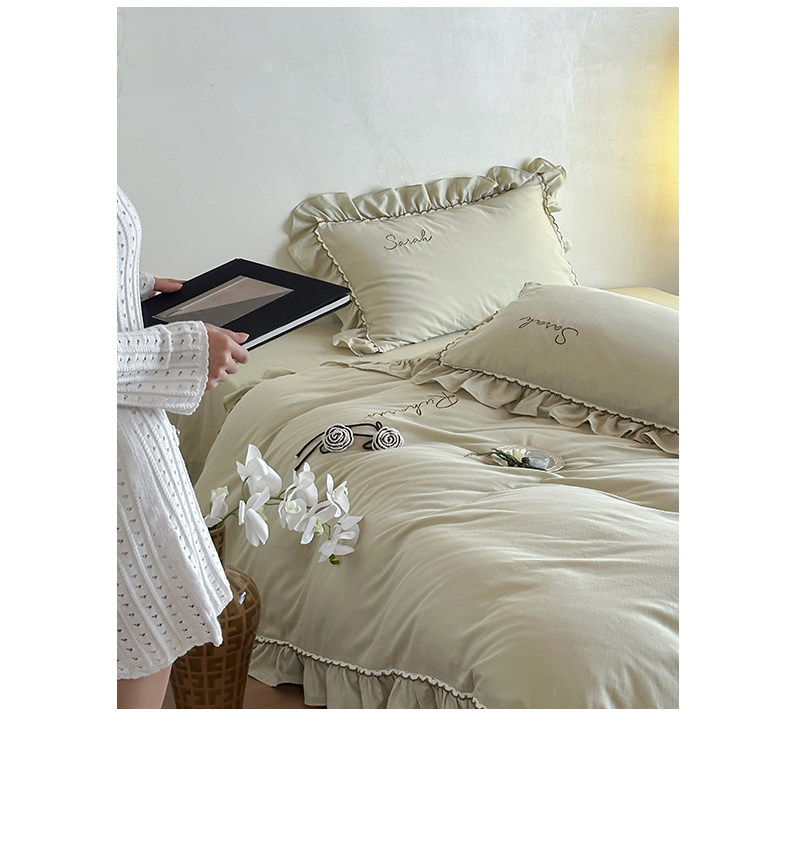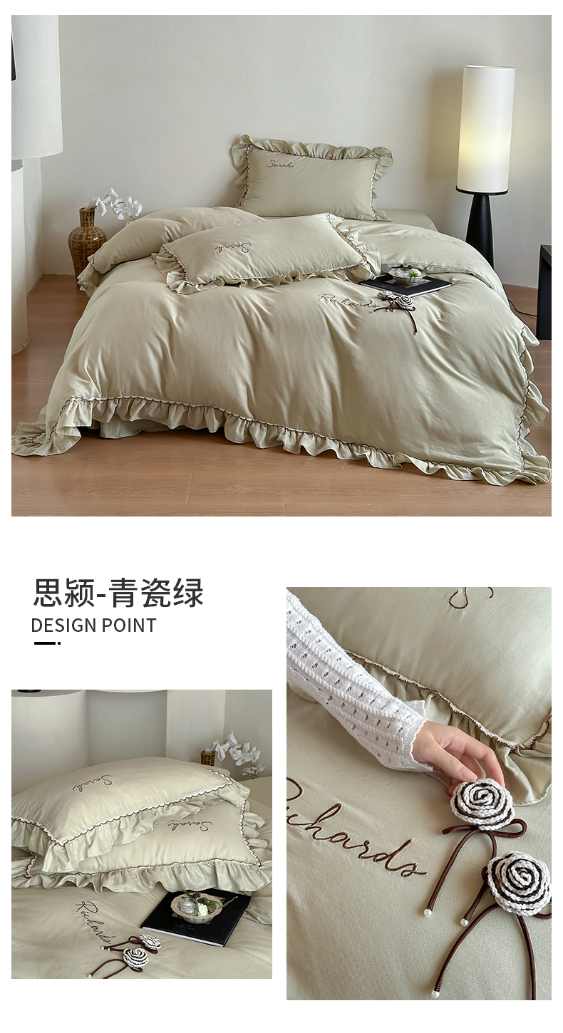 名品优仓 2025新款纯棉水洗棉双层纱提花手工花韩版花边四件套 思颍-青瓷绿