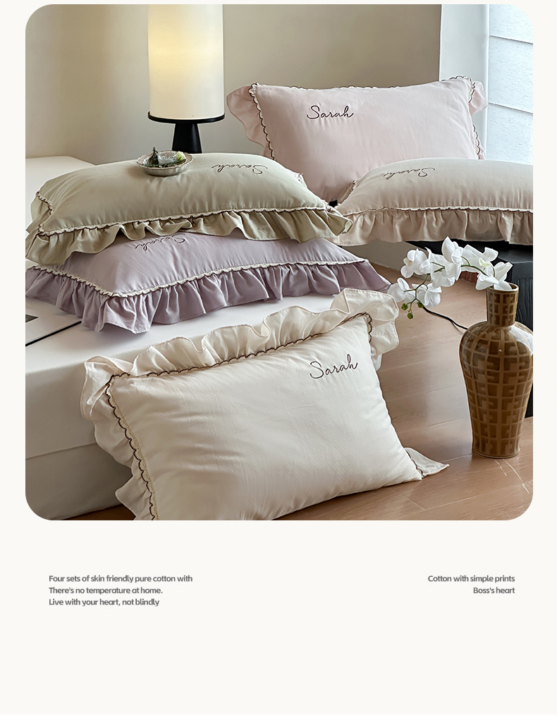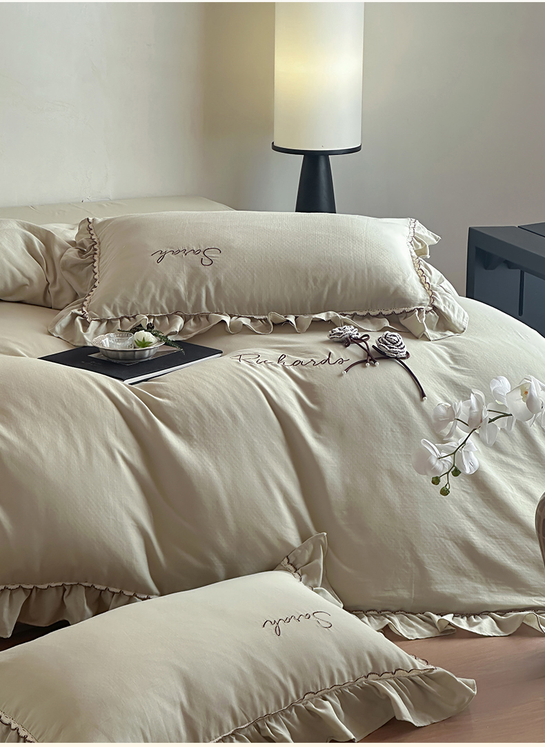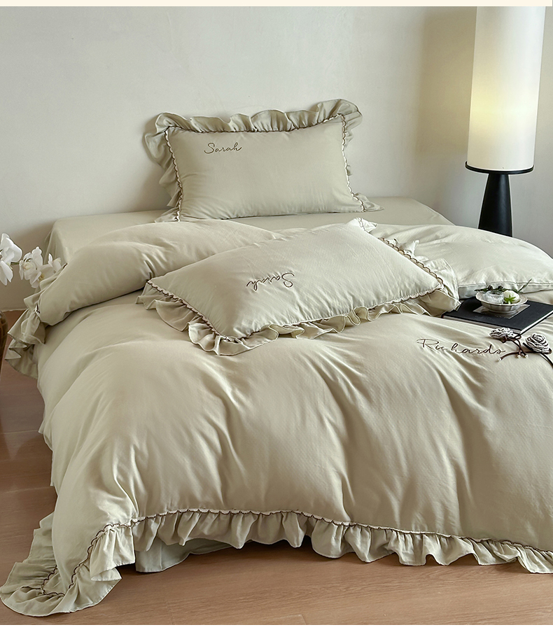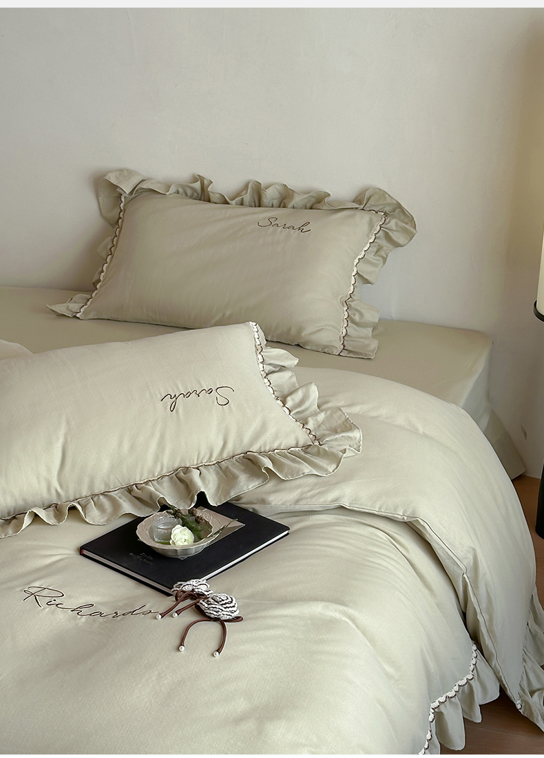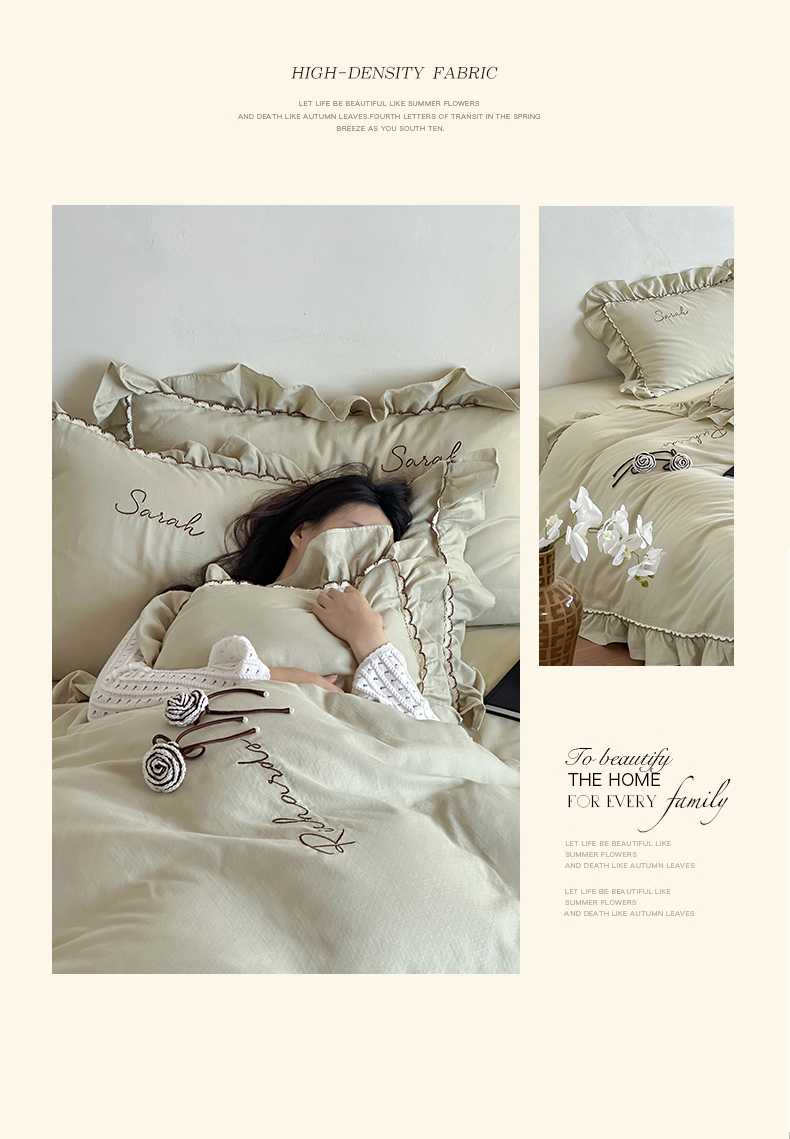 名品优仓 2025新款纯棉水洗棉双层纱提花手工花韩版花边四件套 思颍-青瓷绿