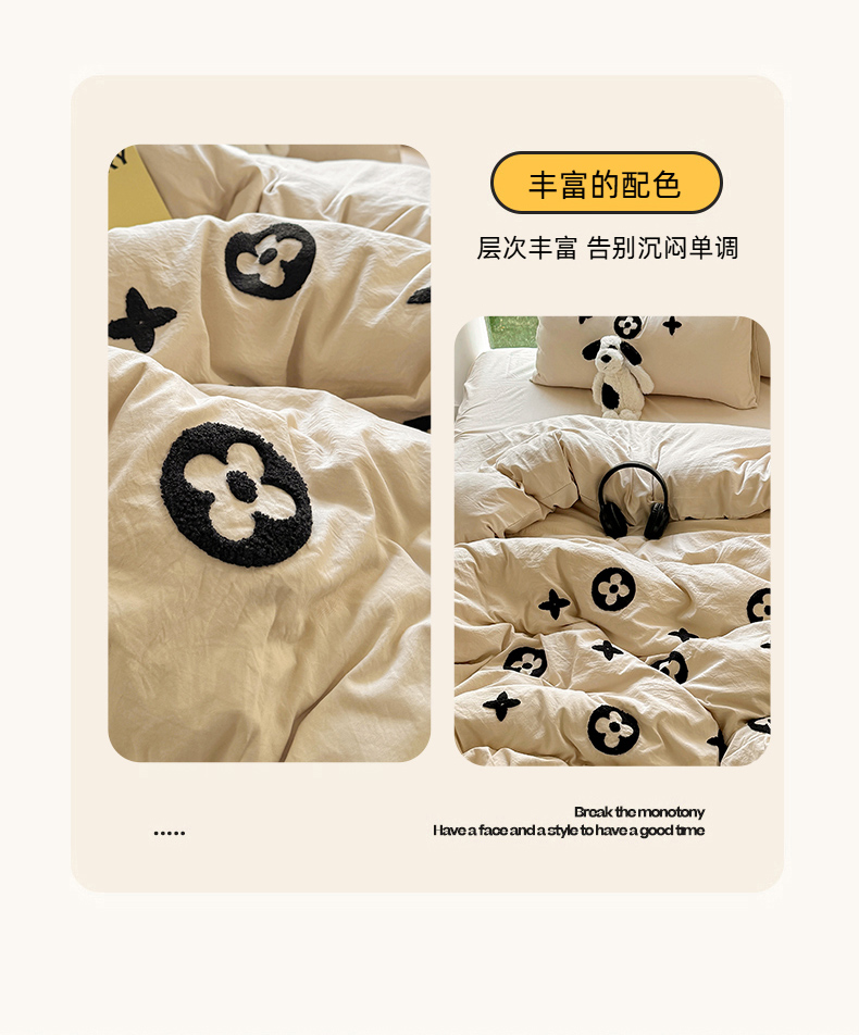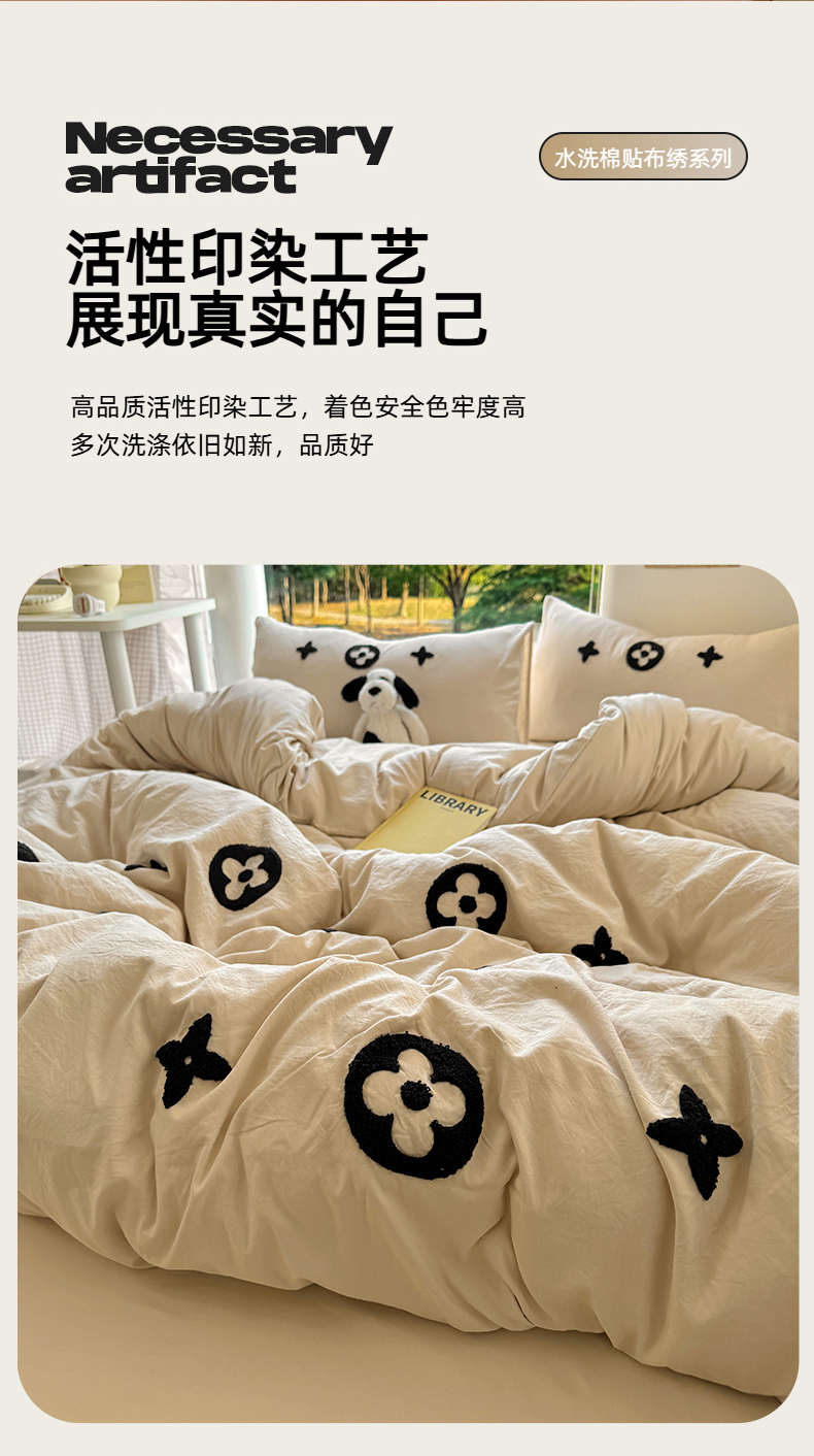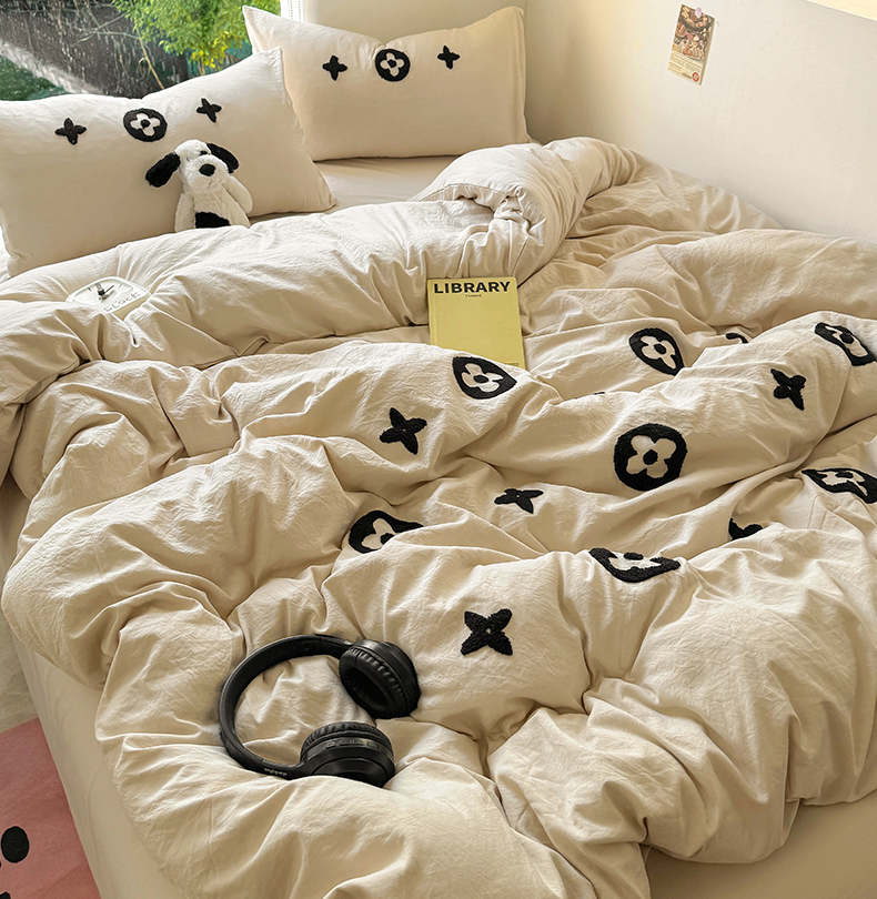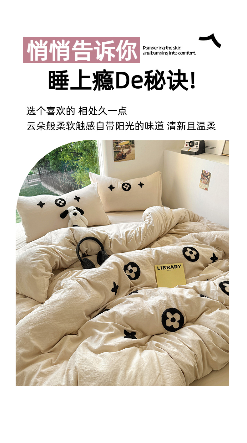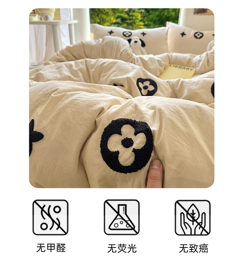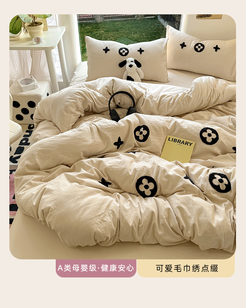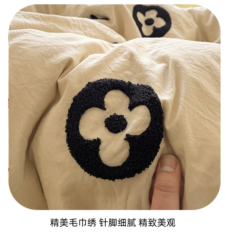 当前位置: 91家纺网 > 商品网购 > 床品套件 > 四件套 > 水洗棉四件套 > 耀达家居 2025新款A类水洗棉毛巾绣四件套 四叶草-咖
