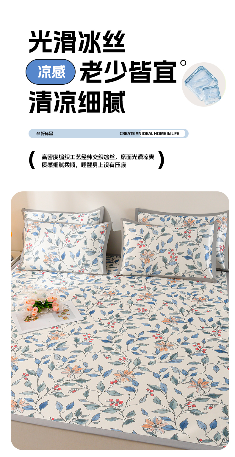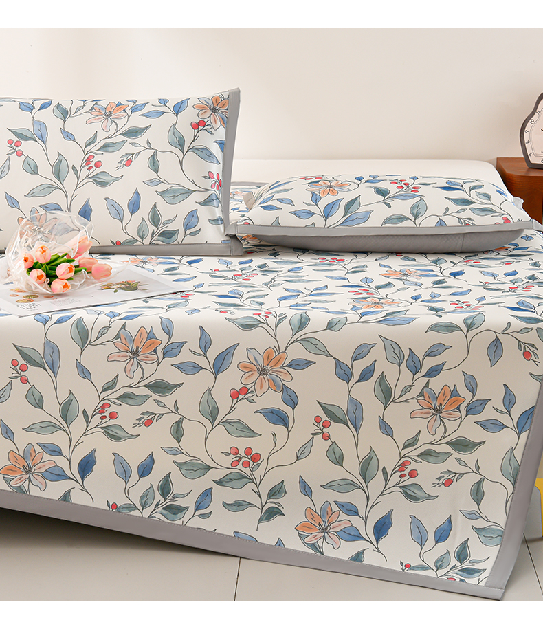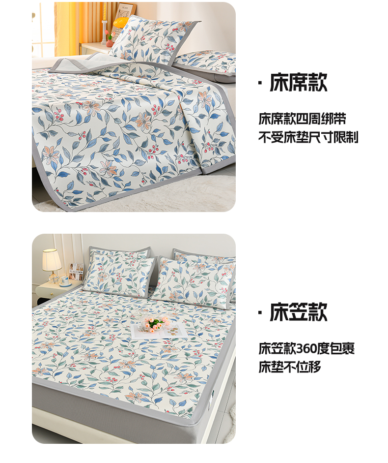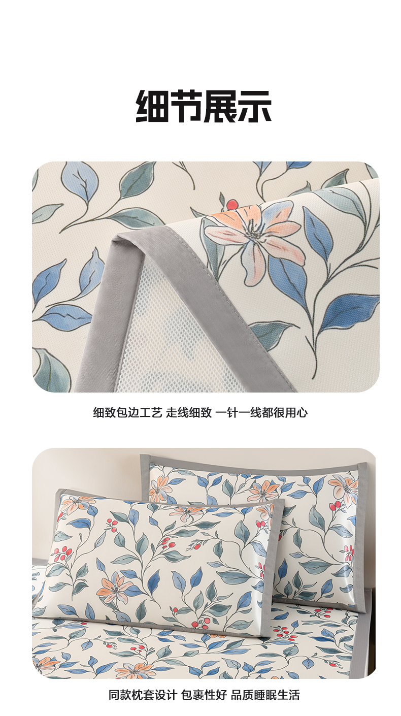 商品名称:简一 2025新款A类碳光印花数码冰丝凉席系列-床单款 花枝招展