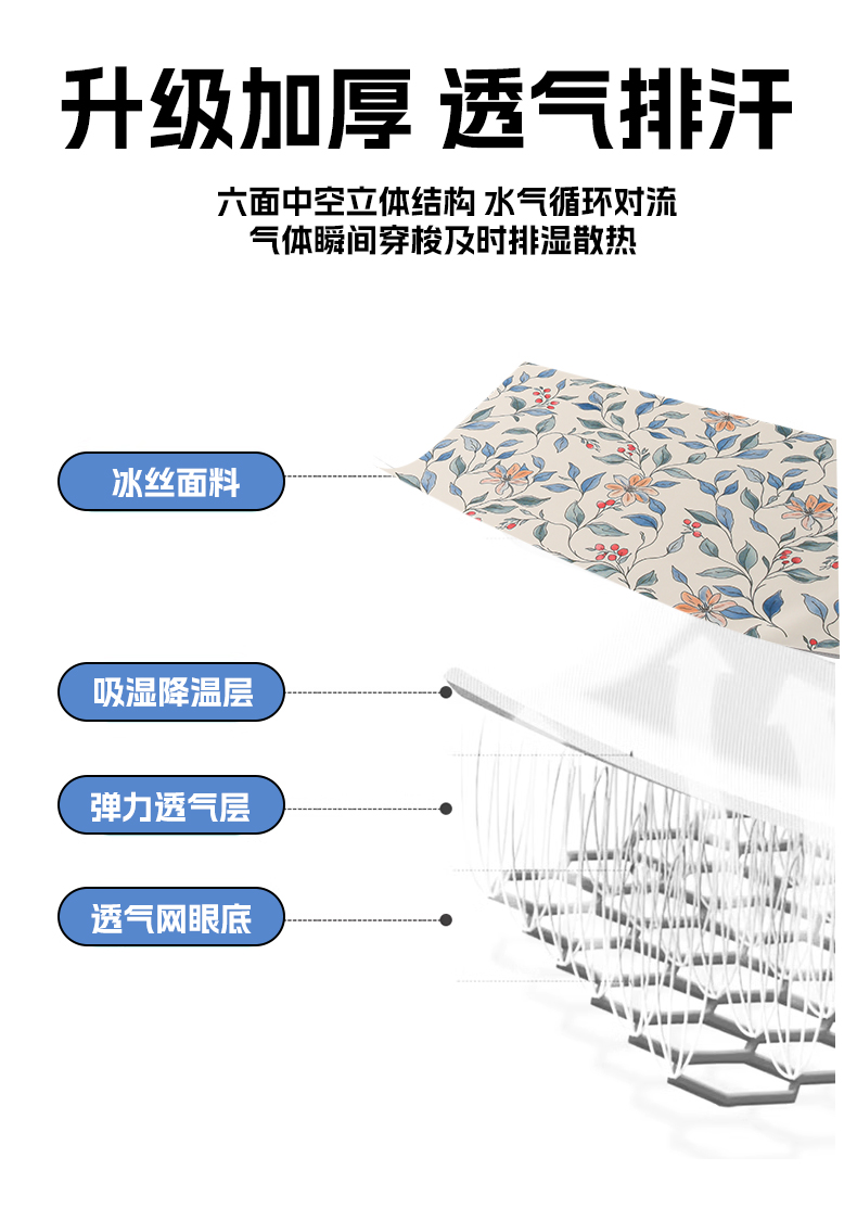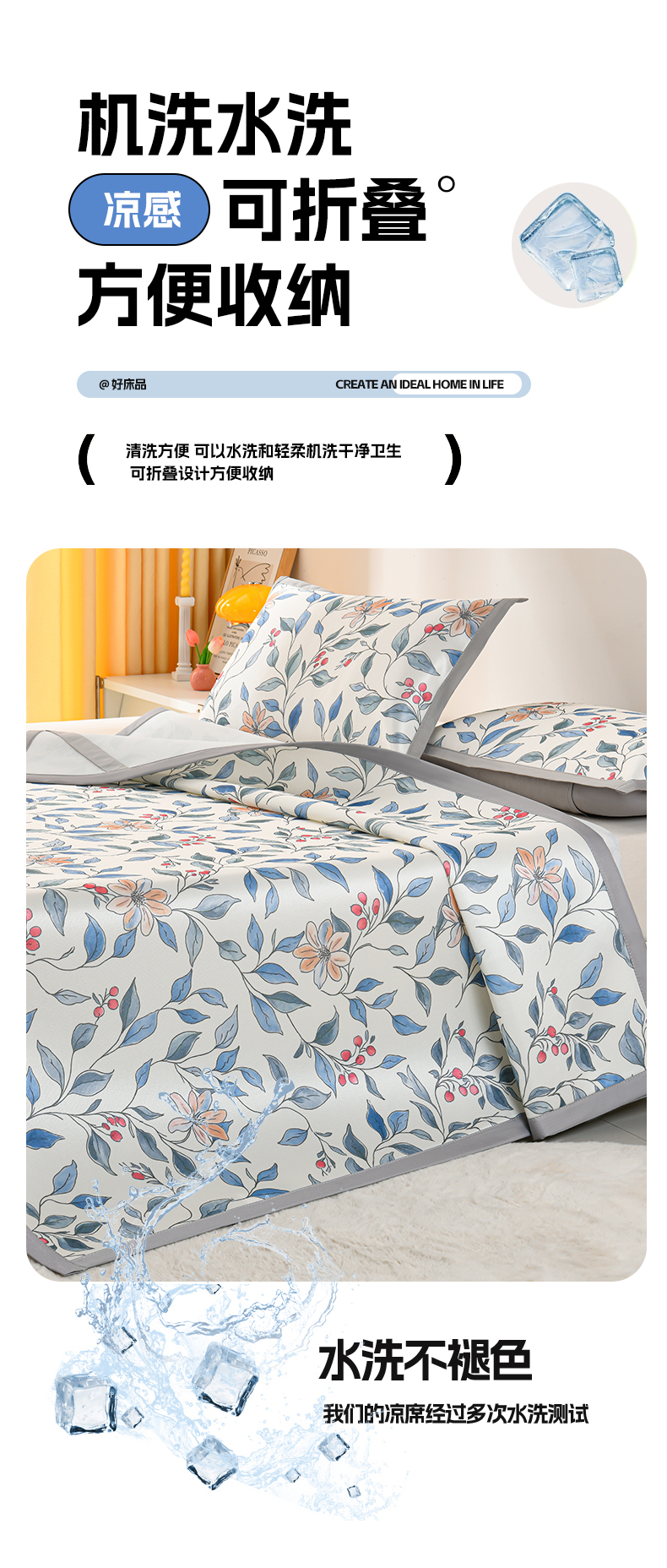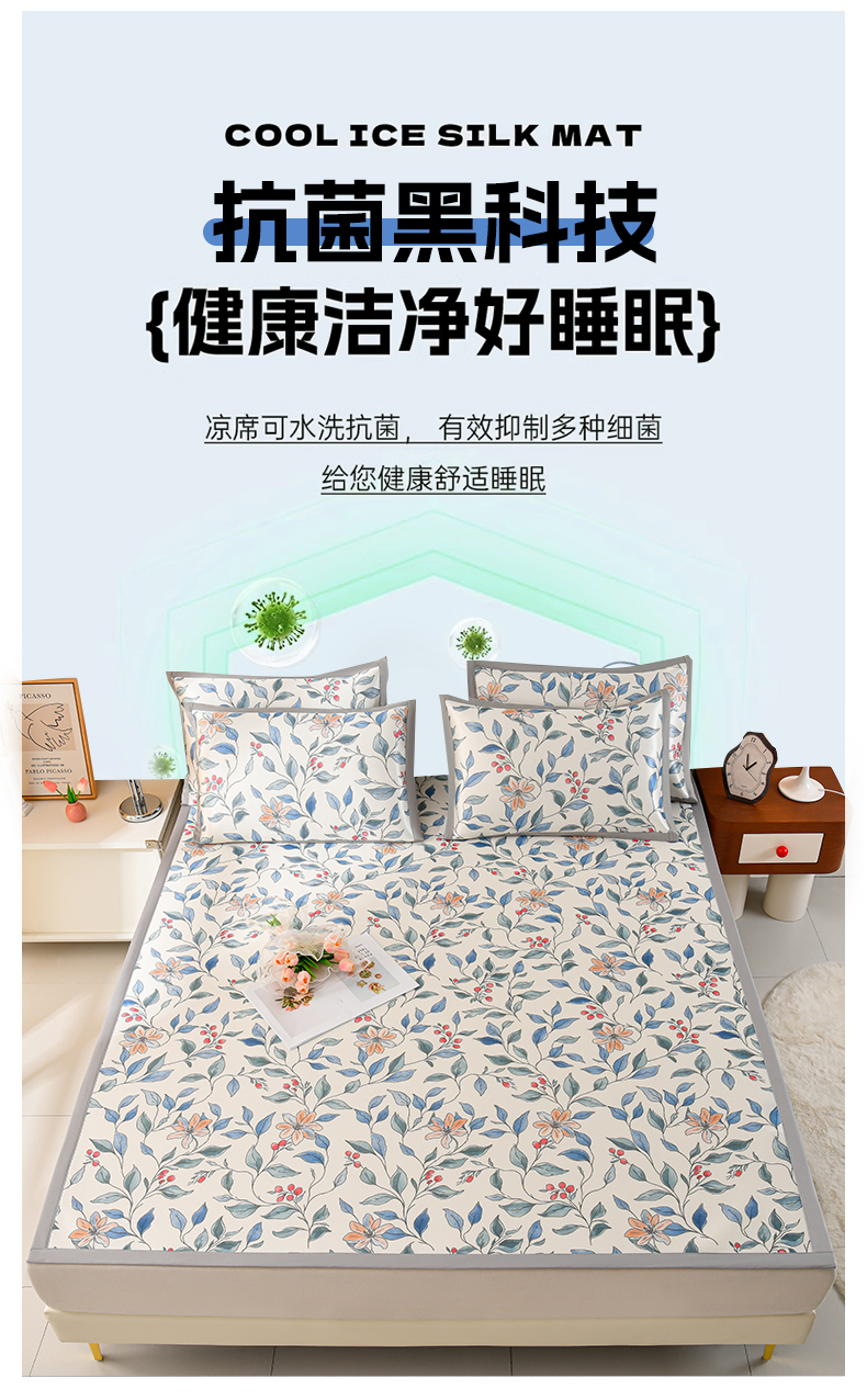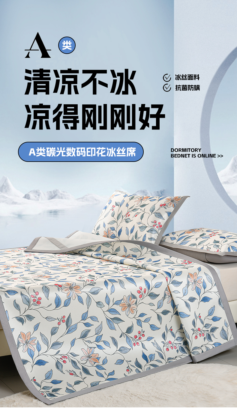 商品名称:简一 2025新款A类碳光印花数码冰丝凉席系列-床单款 花枝招展