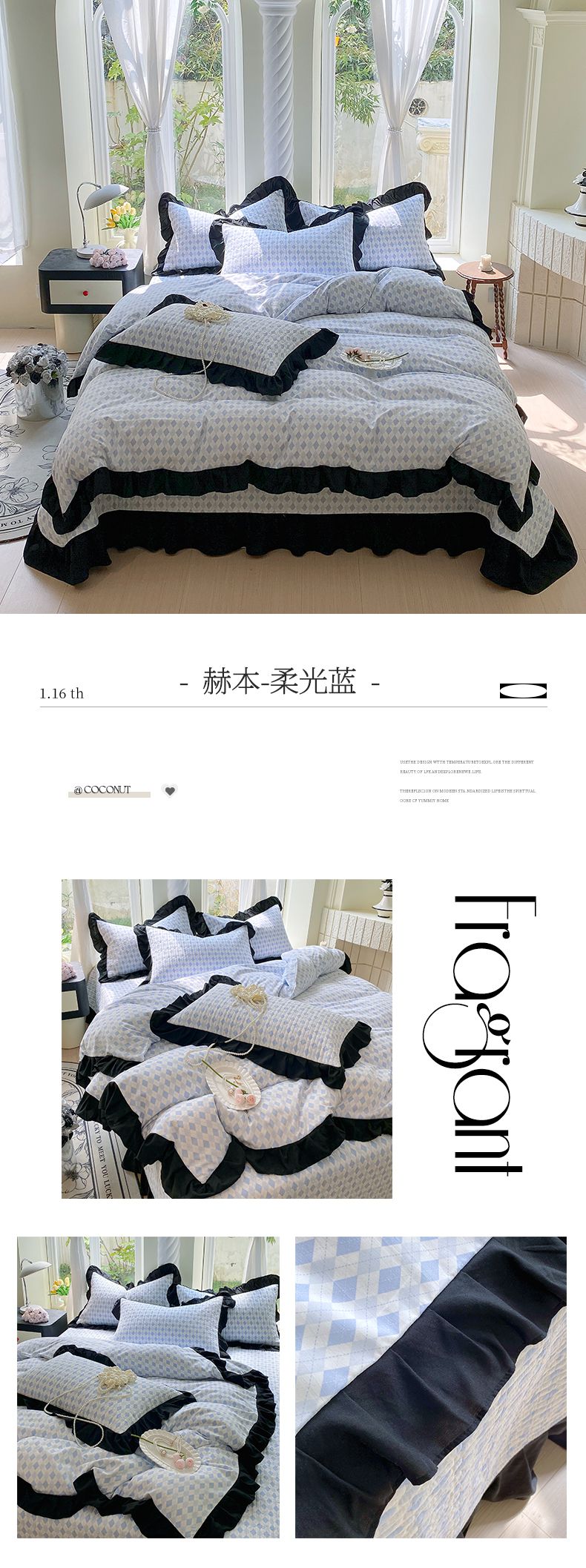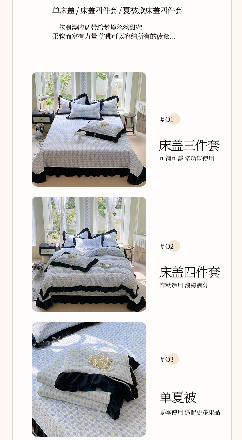 商品名称:八方汇(一户被芯生活馆) 2025新款水洗棉花边夏被款夏凉被空调被床盖四件套 赫本-柔光蓝