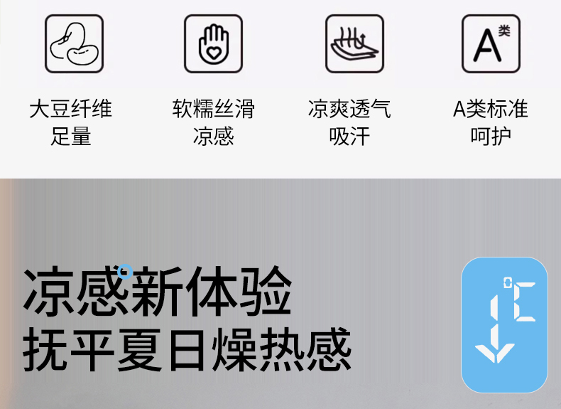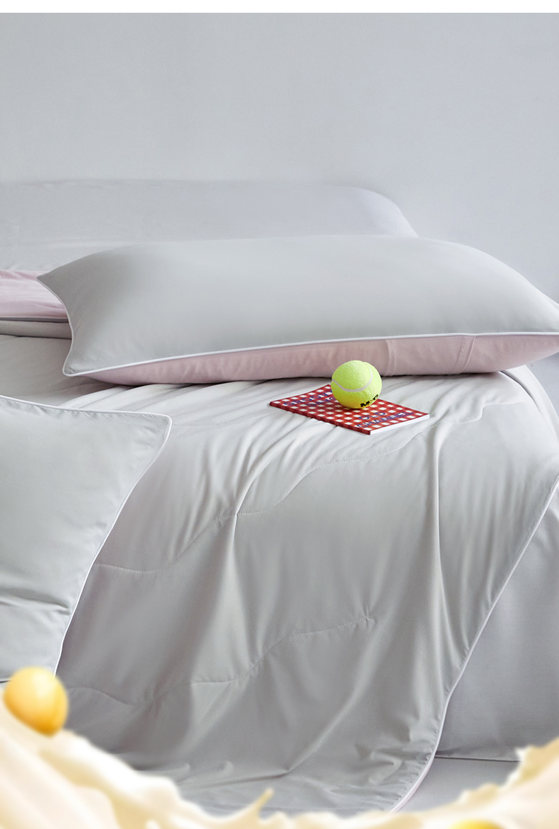 商品名称:头等舱 2025新款4.0版凉感A类锦氨(165克)55大豆抗菌夏被配礼盒 浅灰拼浅豆沙