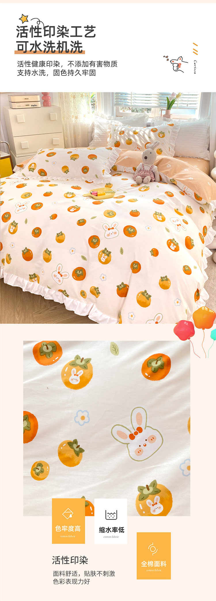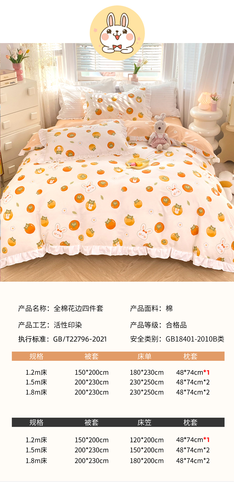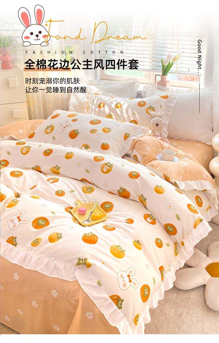 当前位置: 91家纺网 > 商品网购 > 床品套件 > 四件套 > 全棉普通四件套 > 2025新款公主风四件套全棉纯棉白花边被套床单款式三件套 喜事兔