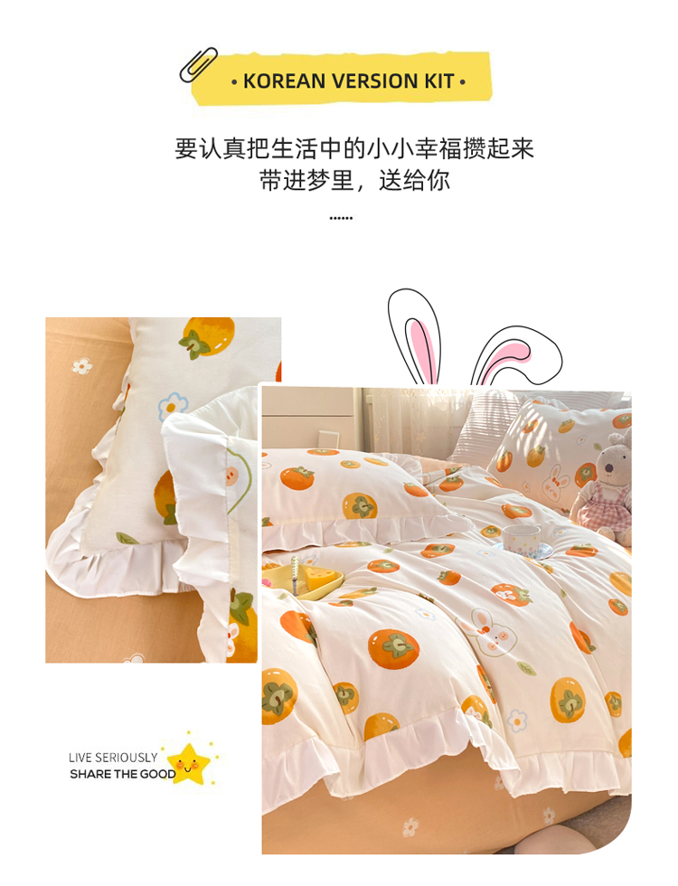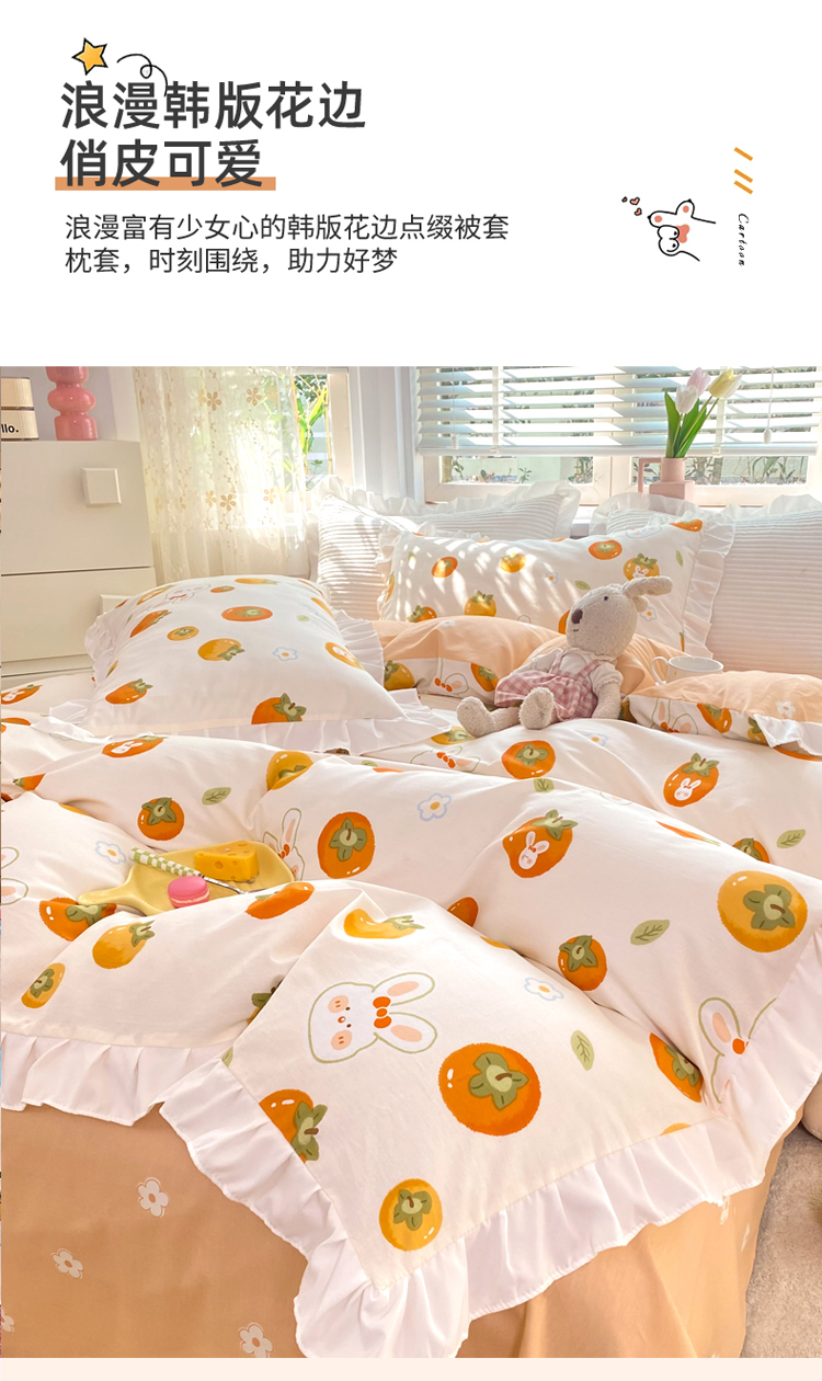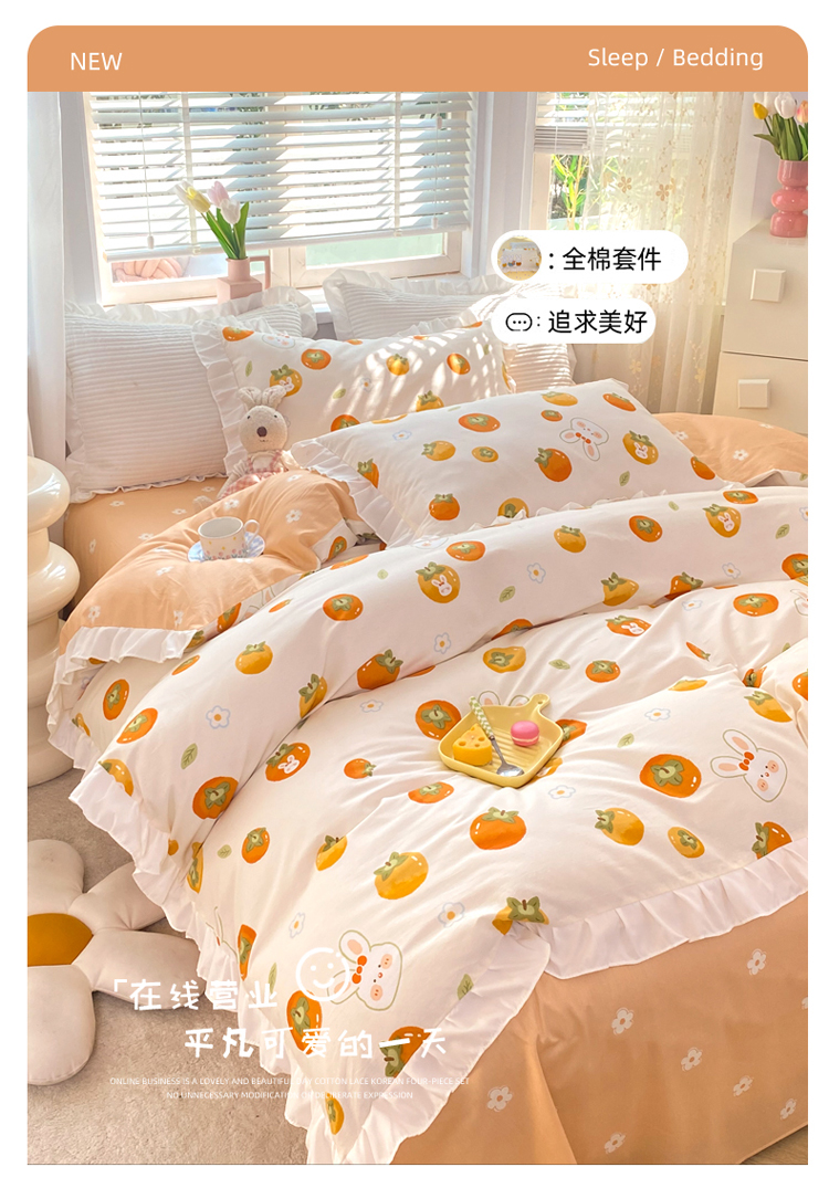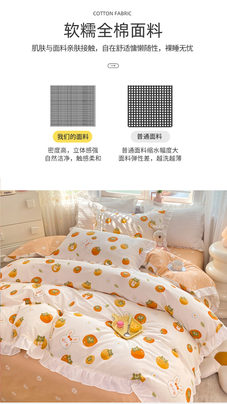 当前位置: 91家纺网 > 商品网购 > 床品套件 > 四件套 > 全棉普通四件套 > 2025新款公主风四件套全棉纯棉白花边被套床单款式三件套 喜事兔