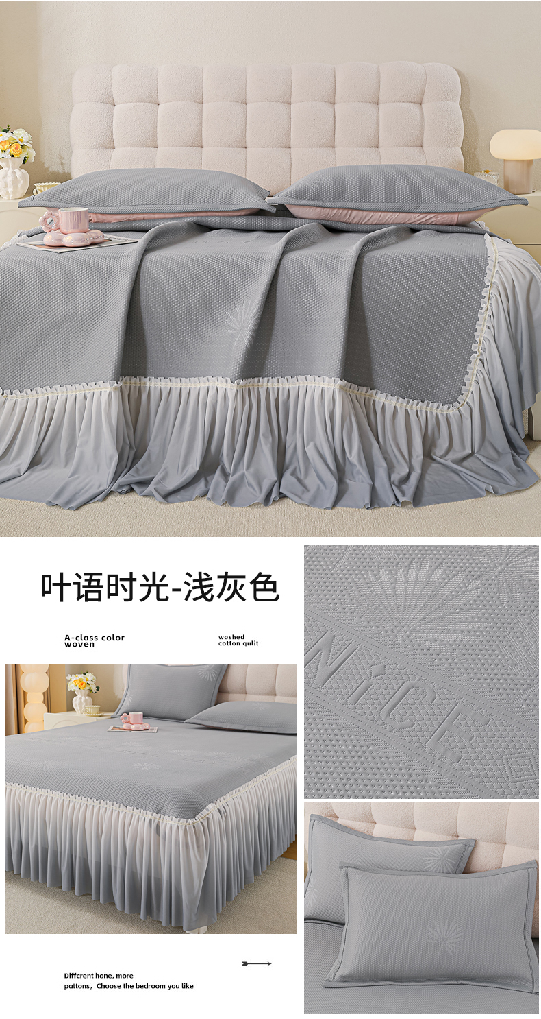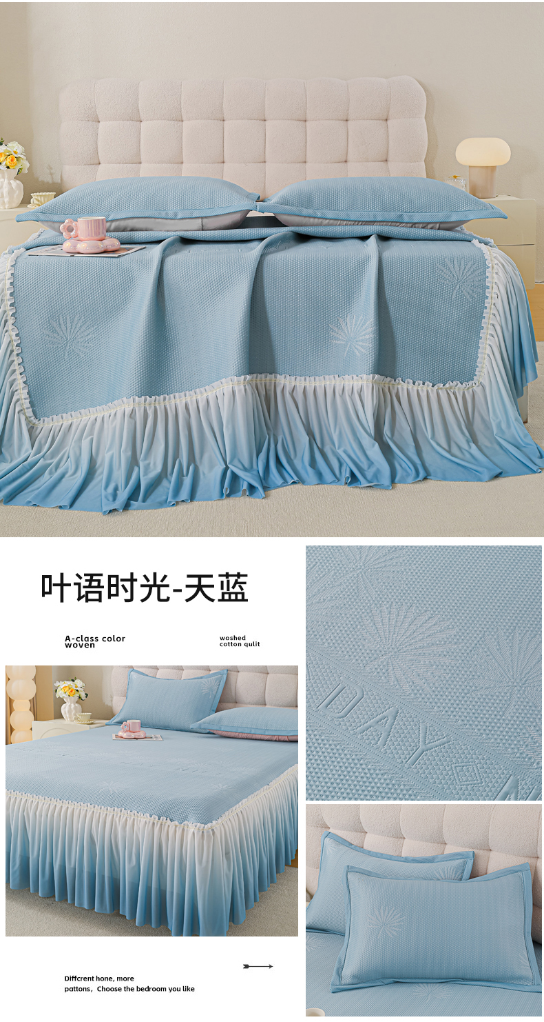 (总) 2025新款复合三明治公主仙女风PE凉感凉豆豆床裙凉席三件套,叶语时光粉,叶语时光灰色,叶语时光绿,叶语时光蓝,绮梦繁花绿,绮梦繁花蓝,绮梦繁花粉