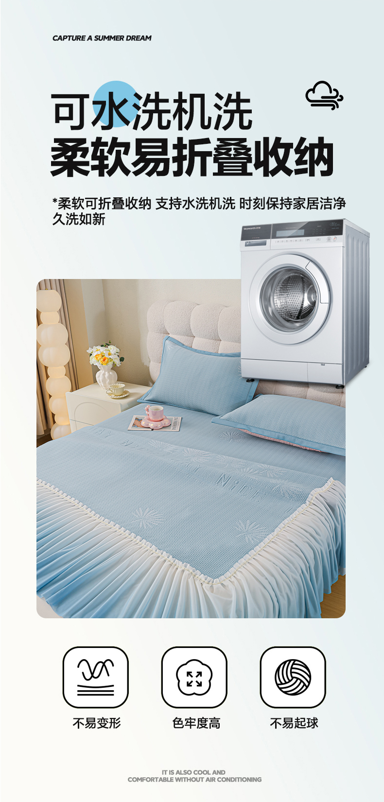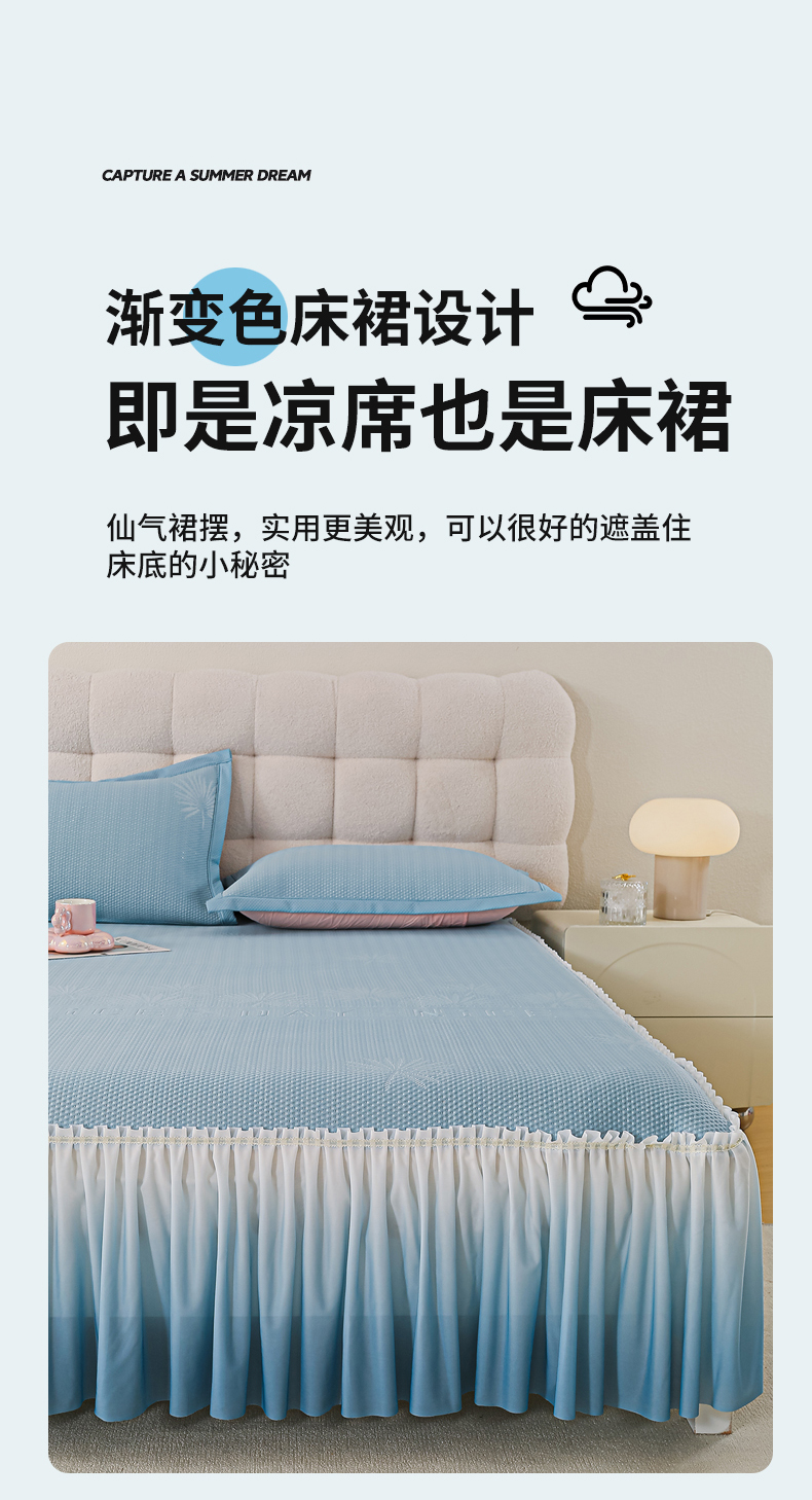 商品名称:(总) 2025新款复合三明治公主仙女风PE凉感凉豆豆床裙凉席三件套