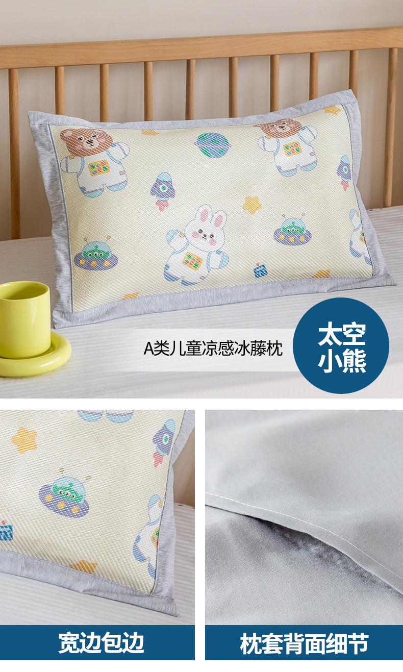 商品名称:嗨生活 2025新款A类儿童冰藤枕套 幼儿园枕套 儿童枕套 太空小熊