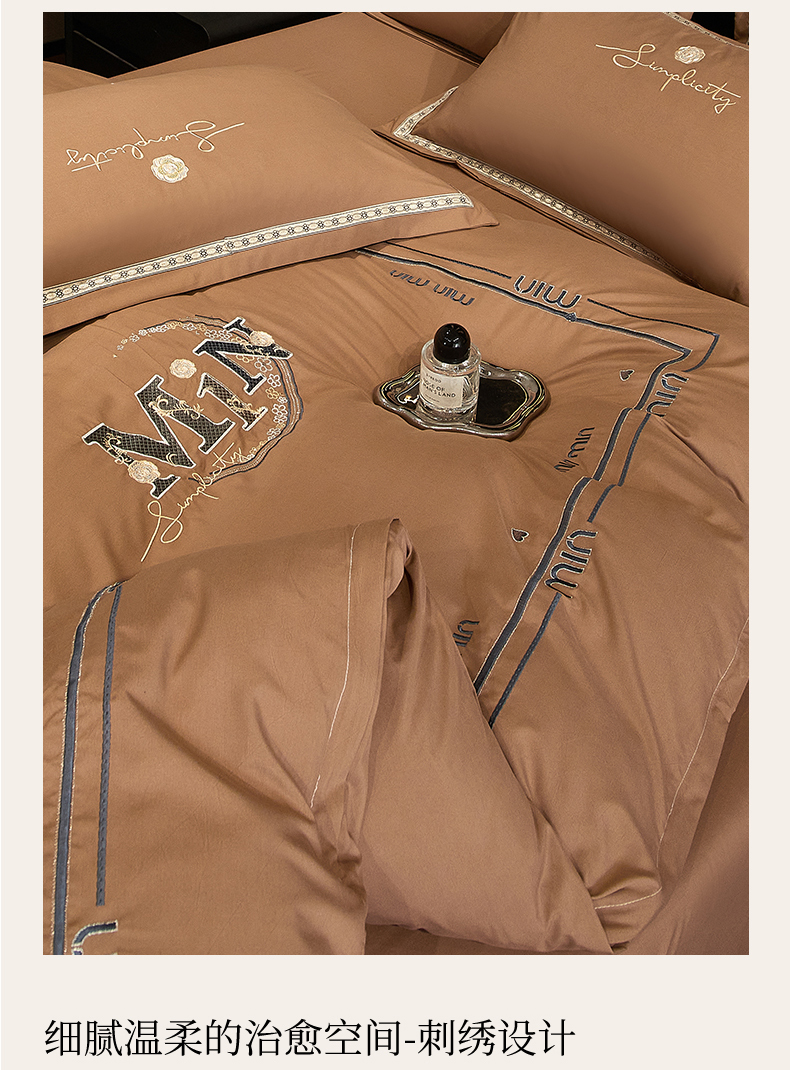 当前位置: 91家纺网 > 商品网购 > 床品套件 > 四件套 > 水洗棉四件套 > 佳宇轩 2025爆款水洗棉五彩刺绣四件套简约轻奢织带绣花床单床笠被罩4件套-简约时代 简约时代咖色