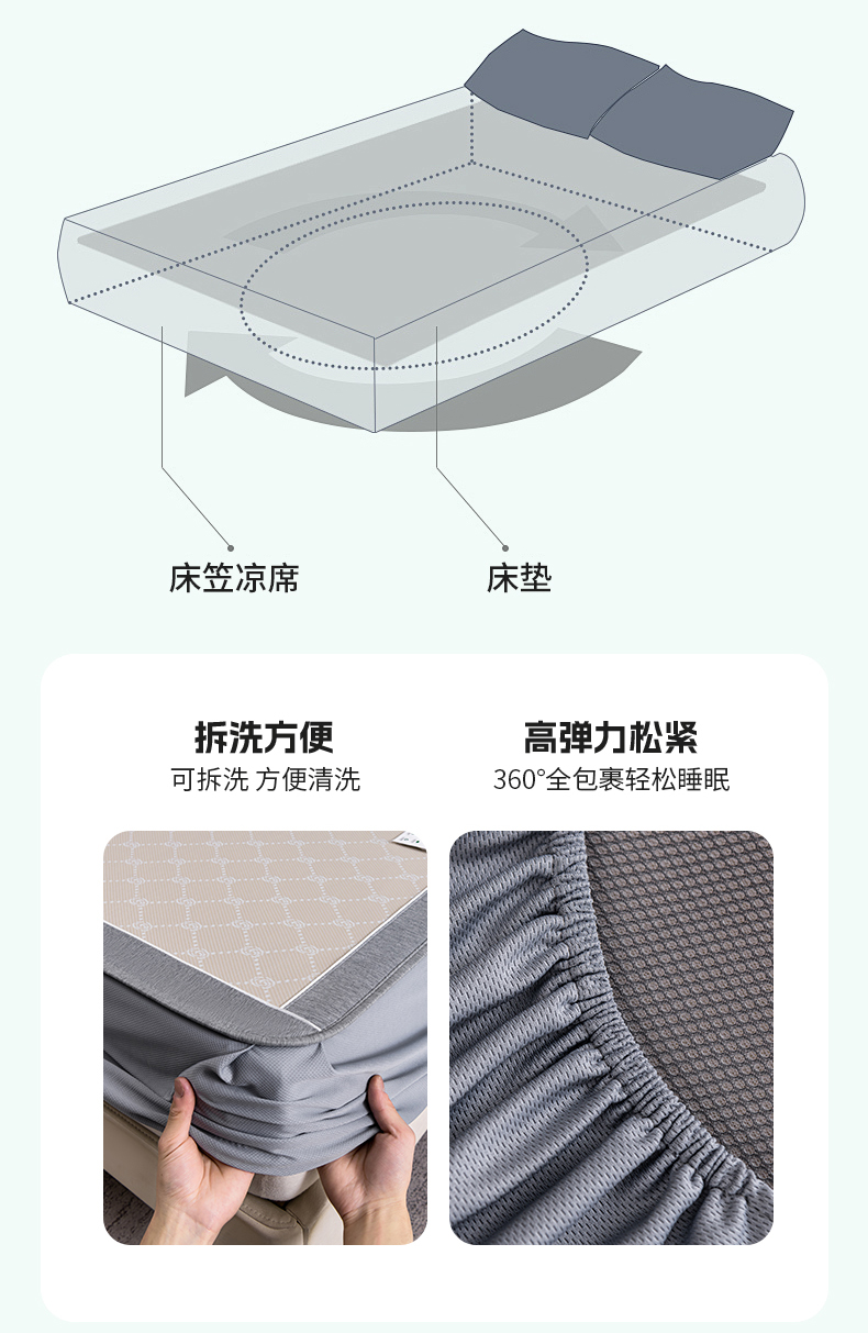 (总)2023新款超精密冰丝席-小斜纹系列-床笠款藤席凉席竹席,粉色,蓝色,绿色,银灰