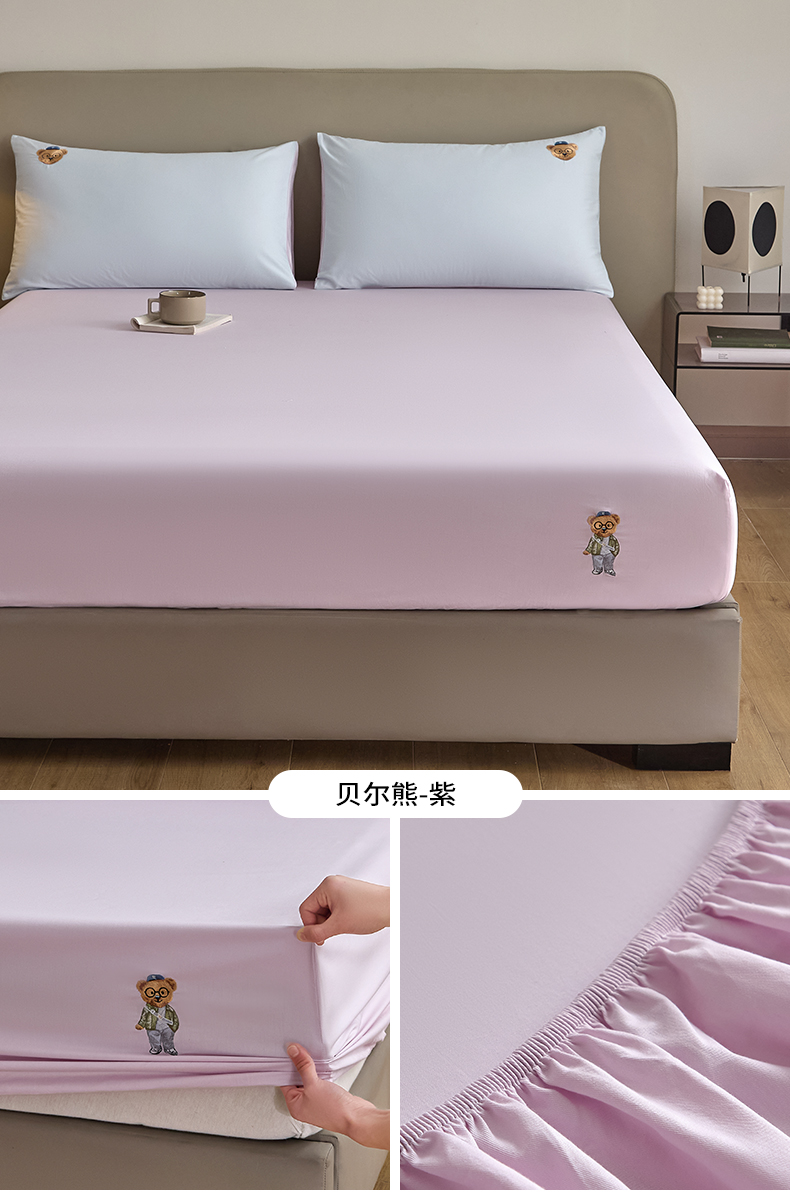 商品名称:禾时 2025新款A类全棉卡通小熊刺绣床笠床套床罩床垫保护套 贝尔熊-紫