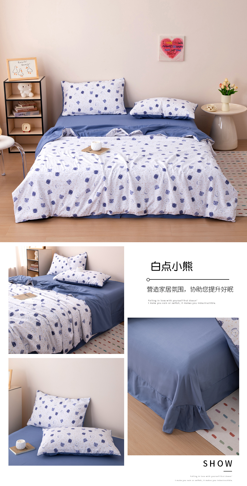 商品名称:南北家居 2025新款针织棉双层纱夏被四件套 白点小熊