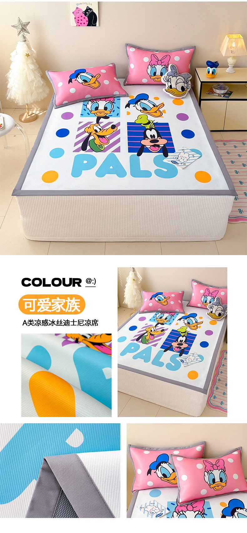 商品名称:典曼家纺 2025春夏新款A类凉感冰丝迪士尼凉席席子 可爱家族