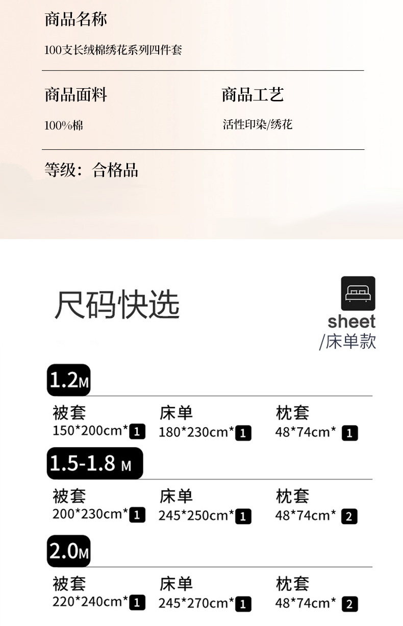 1.8m床笠款四件套-被套200*230 | ¥228.00 |