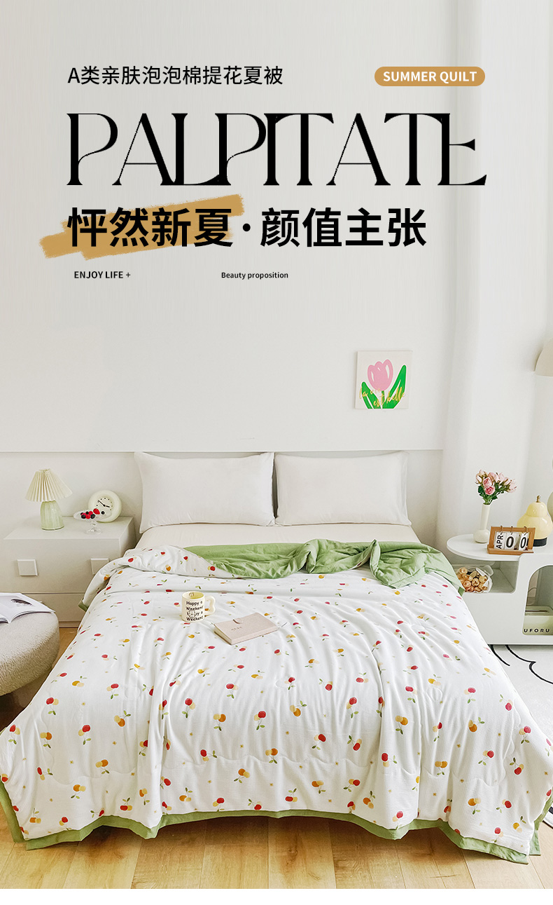 南北家居 2025新款亲肤泡泡棉提花夏被 甜蜜樱桃