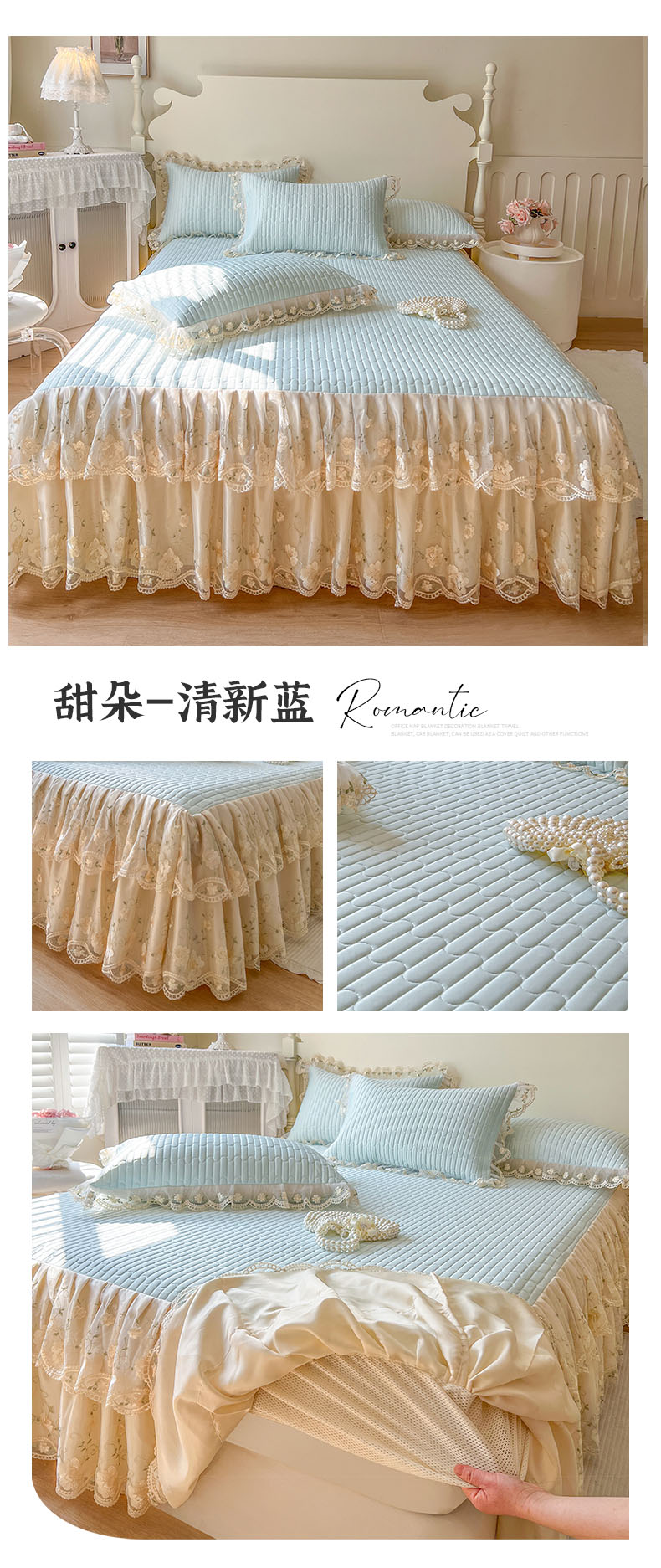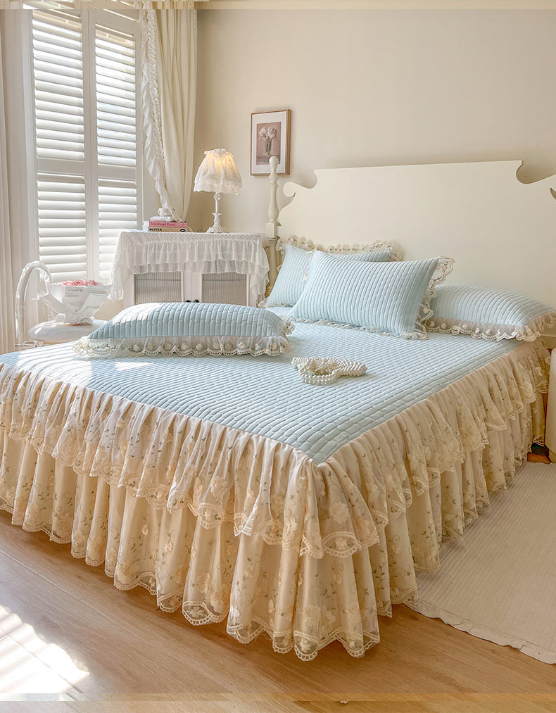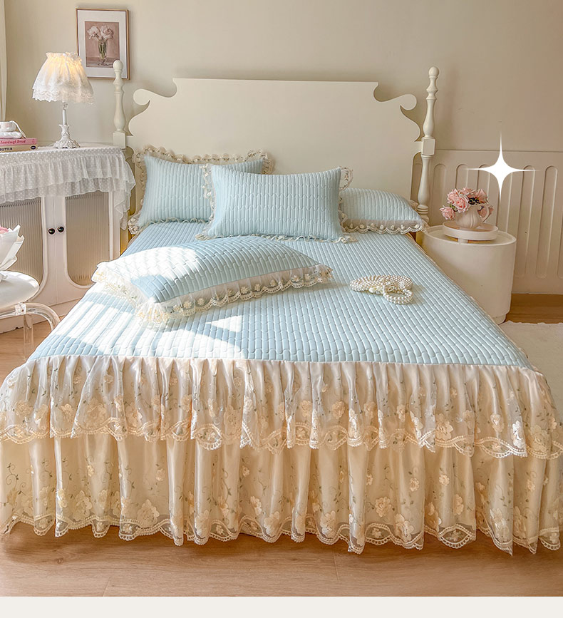 (总)恋尚 2025新款韩式蕾丝丝光棉夹棉床裙四件套,蜜芙-浅蓝,蜜芙-米黄,蜜芙-蜜桃粉,蜜芙-浅白,蜜芙-水绿,蜜芙-香芋紫
