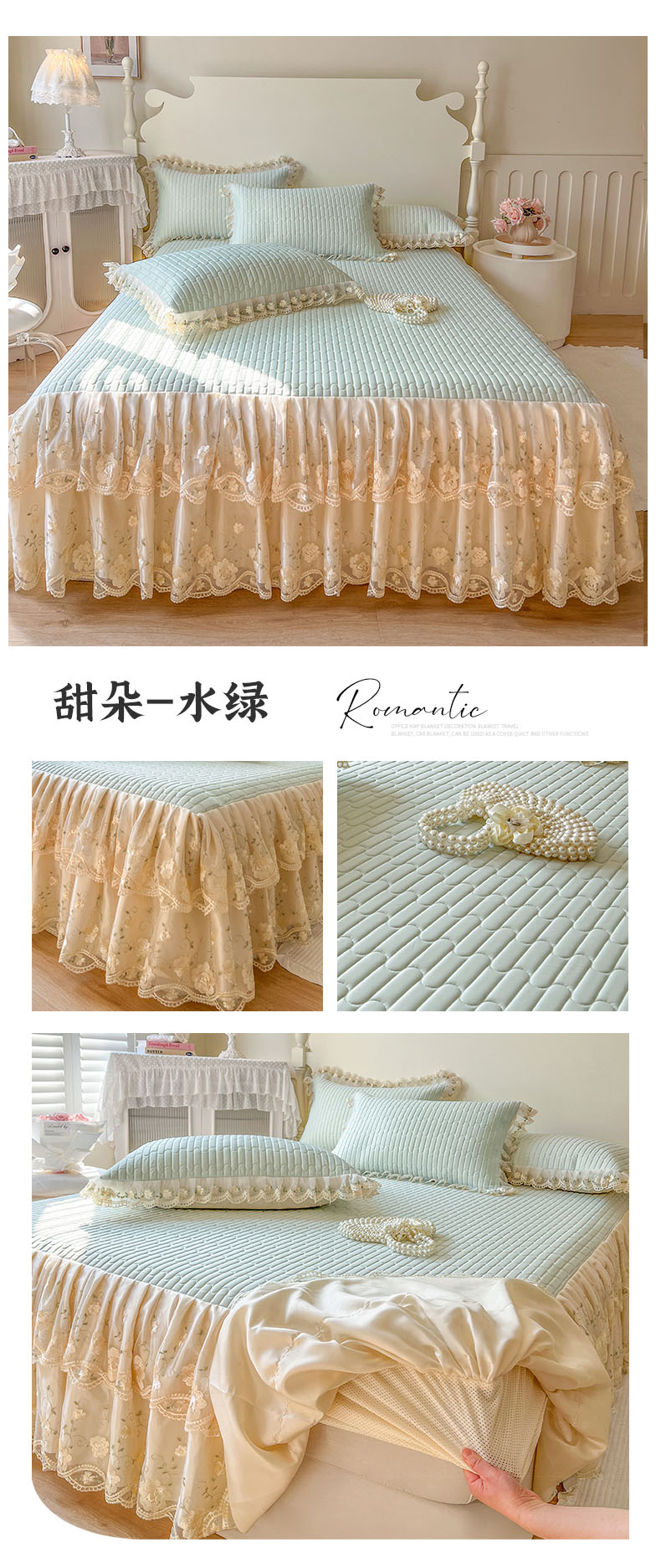 (总)恋尚 2025新款床笠式床裙乳胶夏被三四件套-人鱼公主,人鱼公主 米白,人鱼公主 浅灰,人鱼公主 浅粉,人鱼公主 浅蓝,人鱼公主 樱花粉,人鱼公主 米色,人鱼公主 紫色,人鱼公主 西柚,人鱼公主-水绿