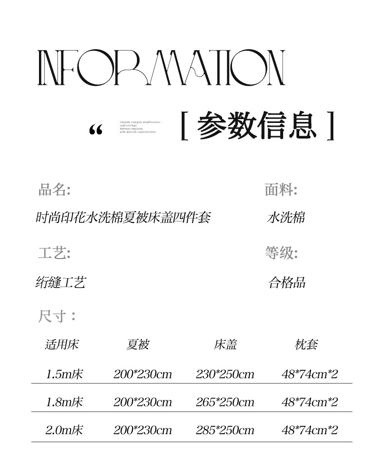 230*250cm床盖夏被四件套 | ¥90.00 |