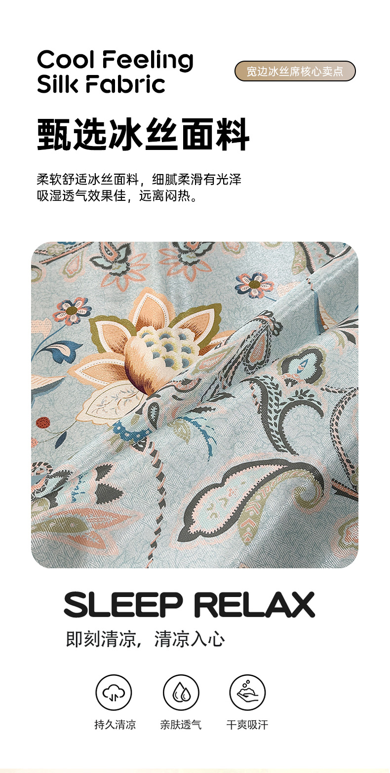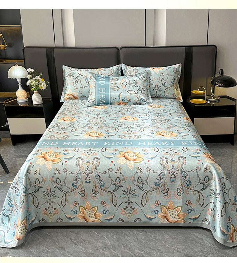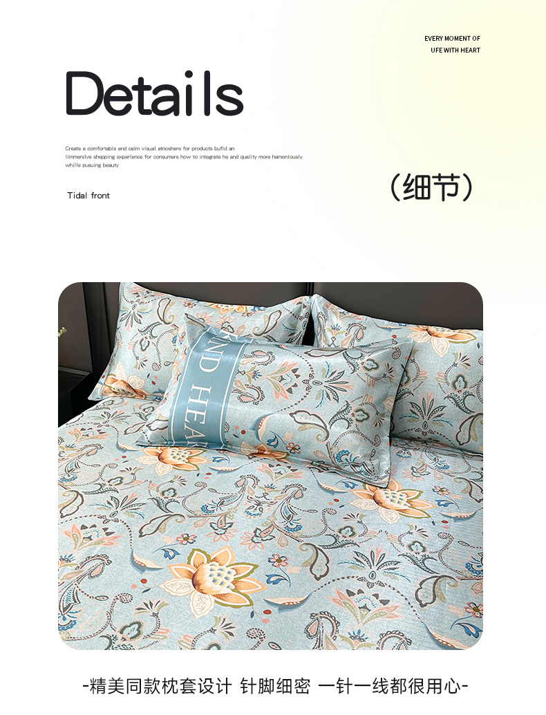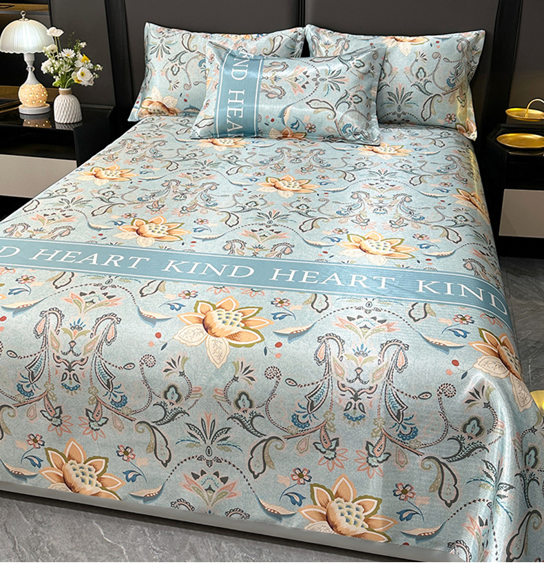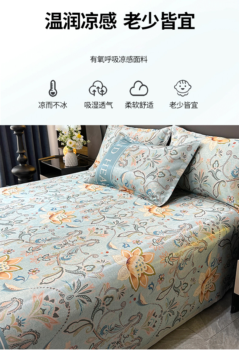 许林 2025新款冰丝凉席床单款凉席三件套-繁花,繁花