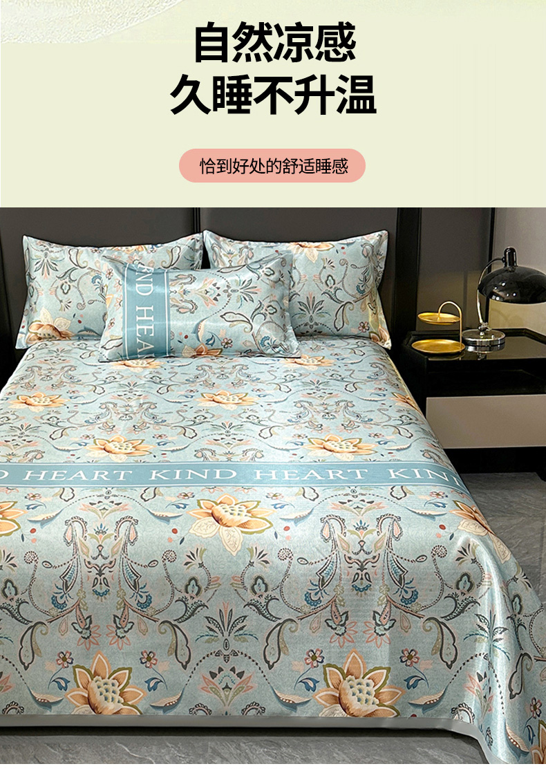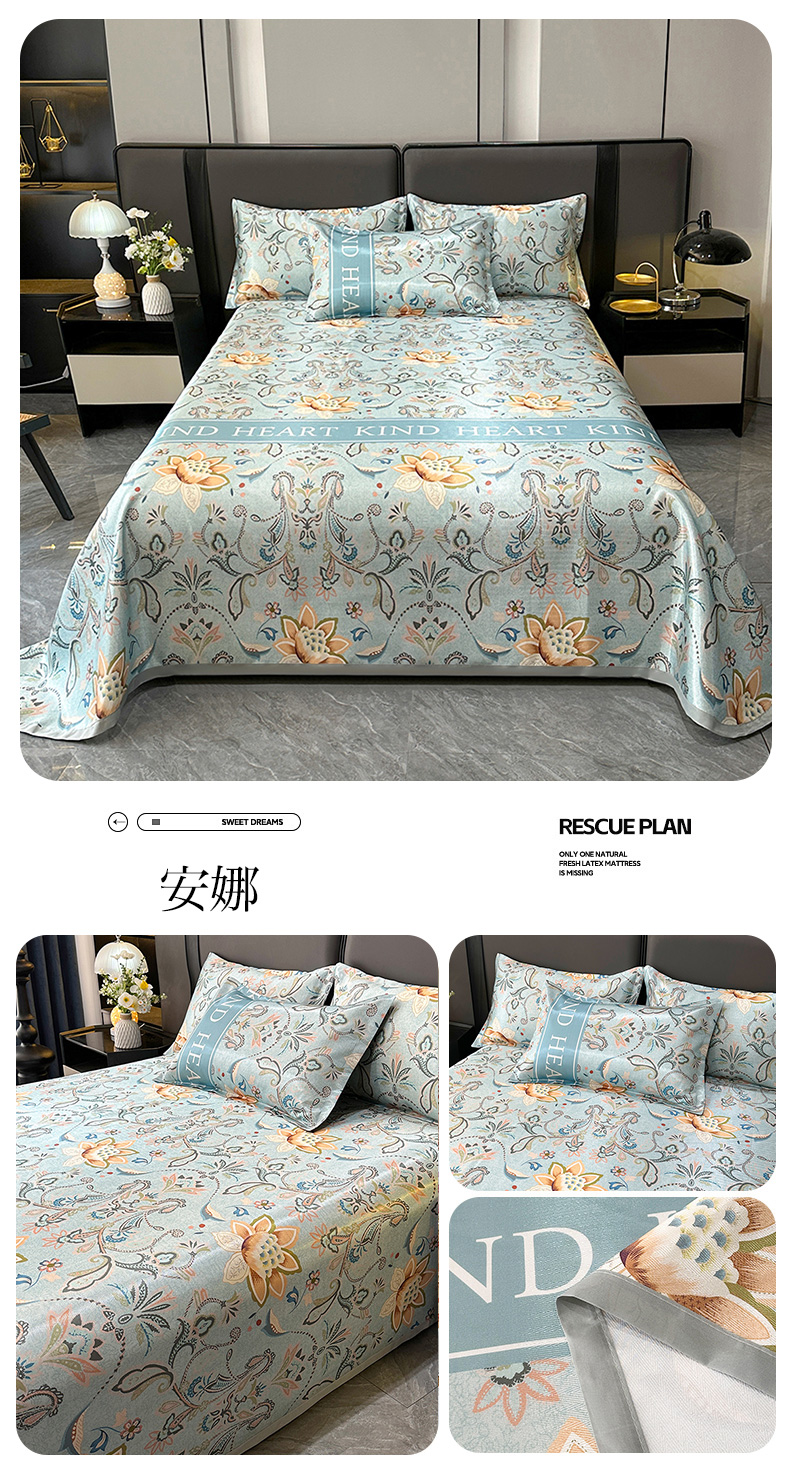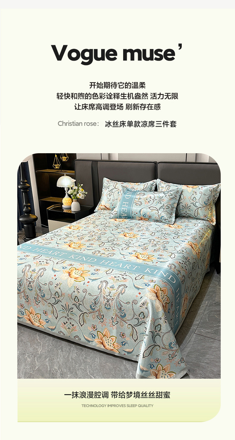 许林 2025新款冰丝凉席床单款凉席三件套-卡米拉,卡米拉