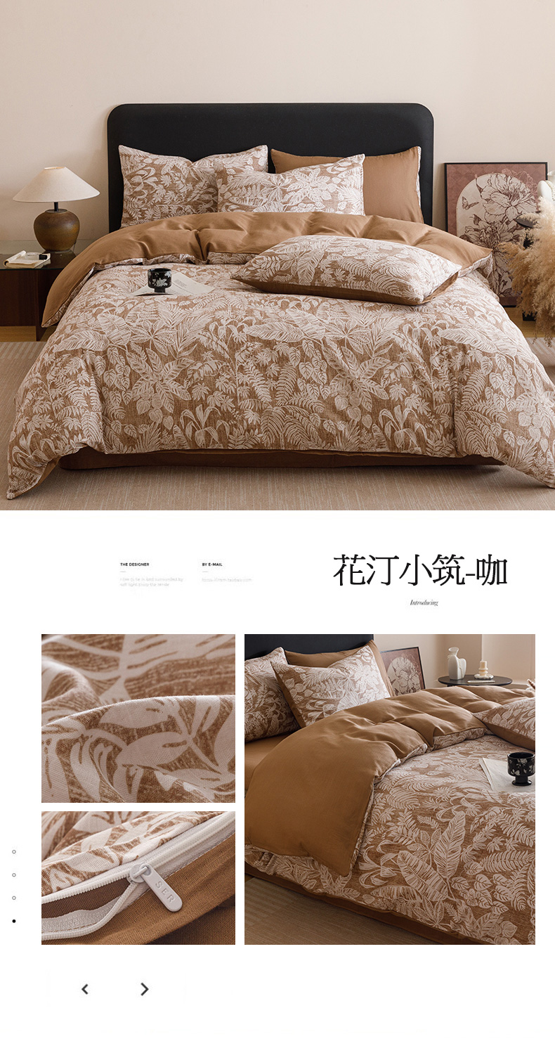 商品名称:首尔家纺 2025新款全棉纯棉双层纱四件套 花汀小筑-咖
