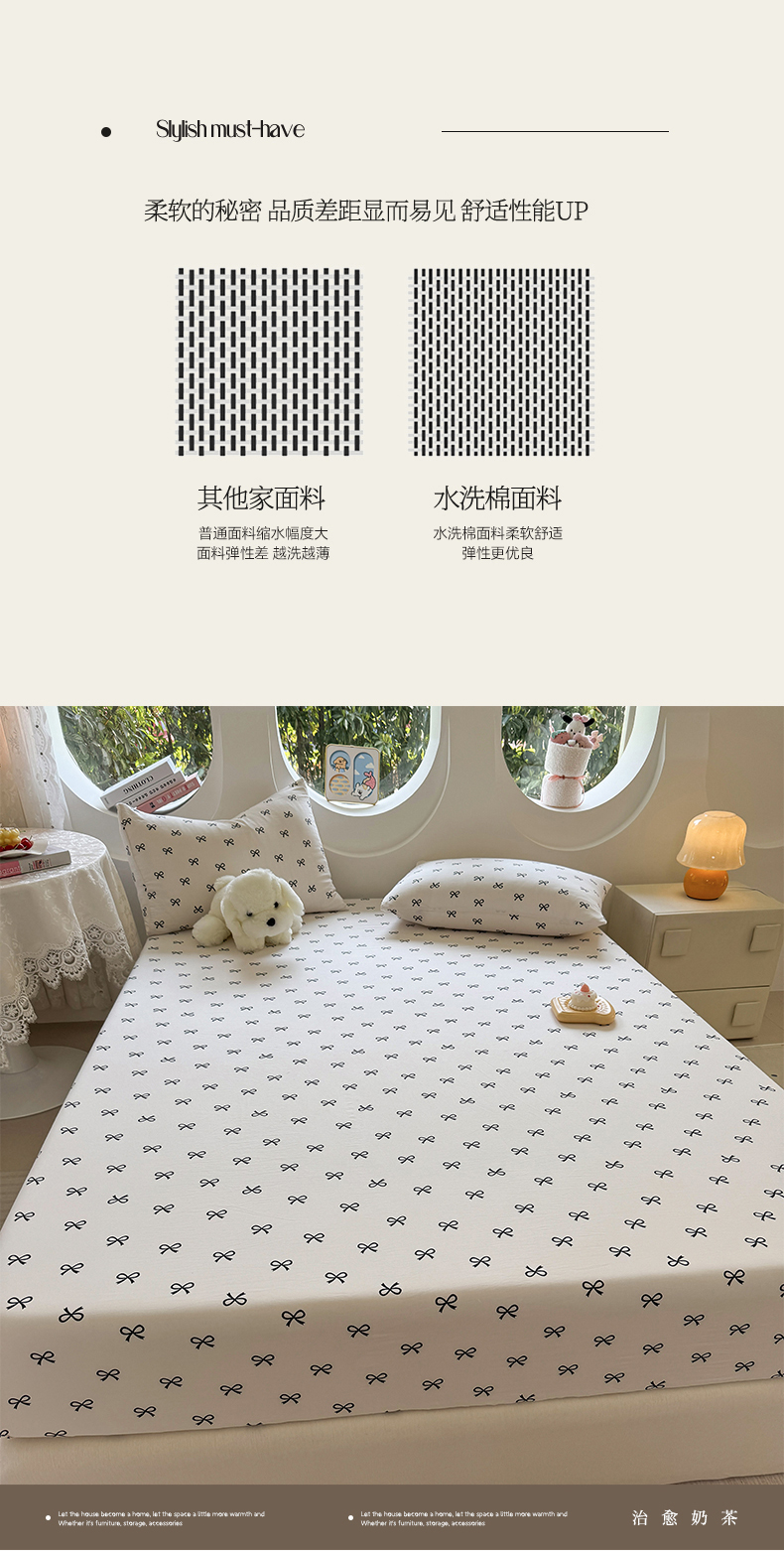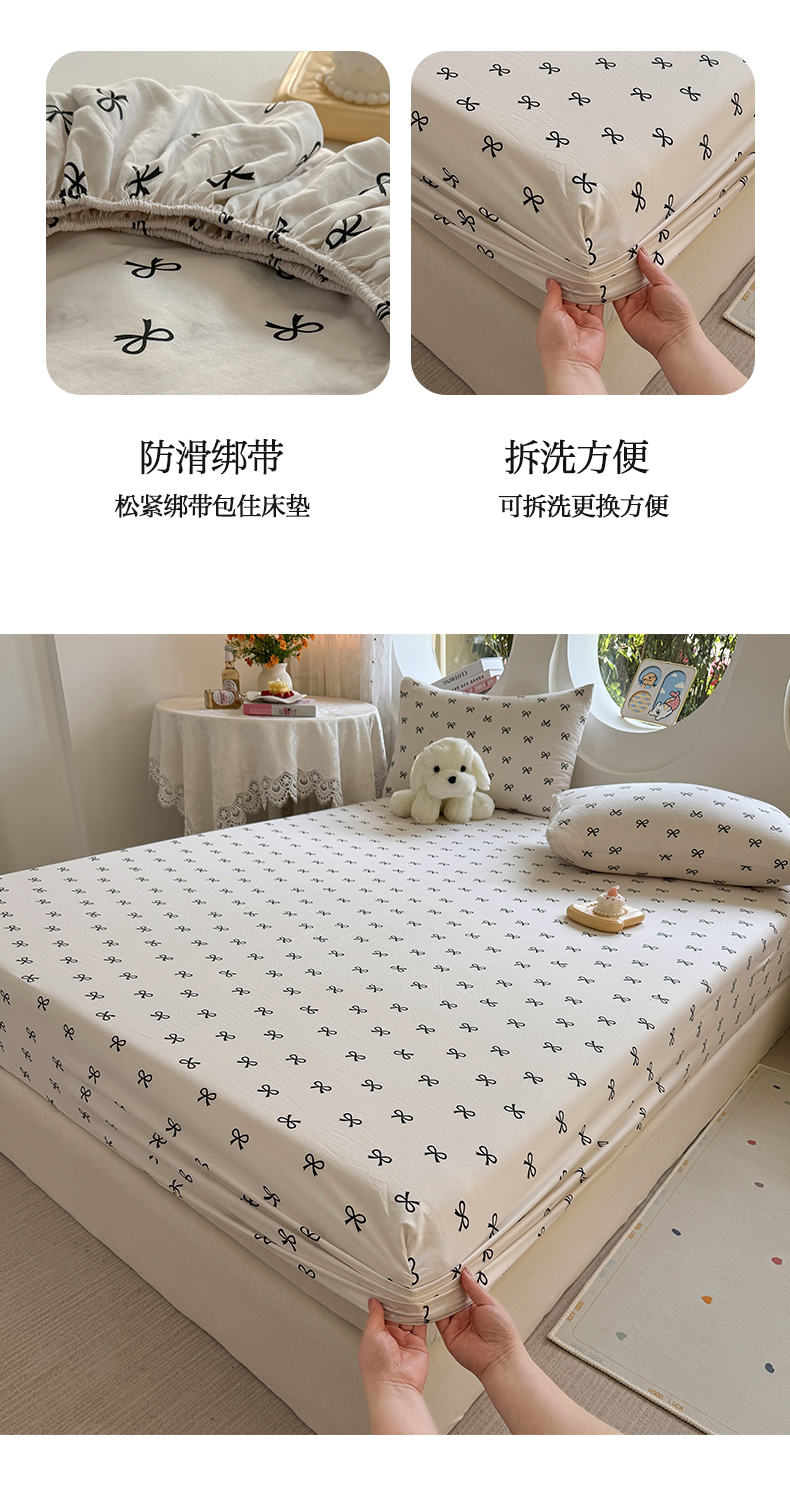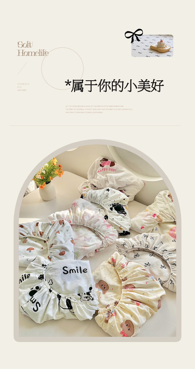 (总)十一家居 2025新款ins韩系卡通印花亲肤水洗棉床笠,黑色可颂,彩蝶之舞,波点小猫,欢乐伙伴,焦糖蘑菇,面包甜甜圈,奶芙小熊,微笑狗狗,组合